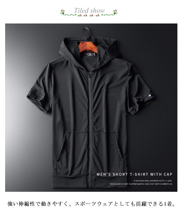 メッシュパーカー 薄手 アウター メンズ 半袖パーカー 柔らかい 通気 夏服 ジップパーカー ドライ 速乾 Tシャツ 吸水速乾 伸縮性 ストレッチ ジップアップパーカー フード付き 羽織り トップス おしゃれ メッシュ 送料無料