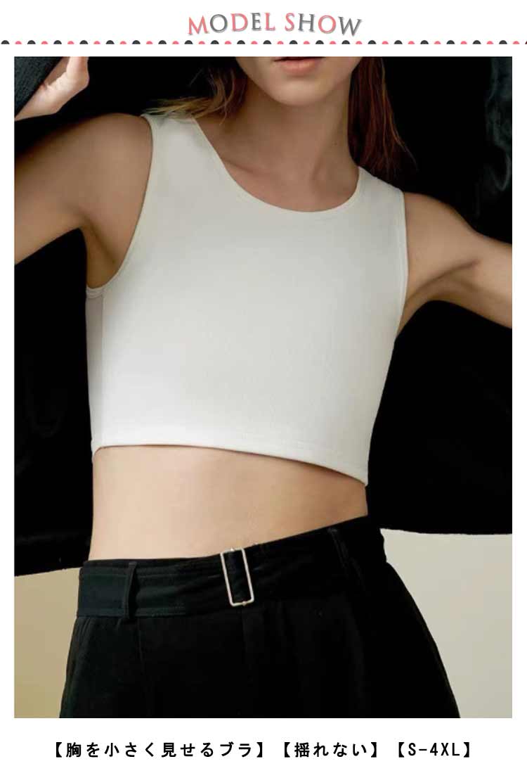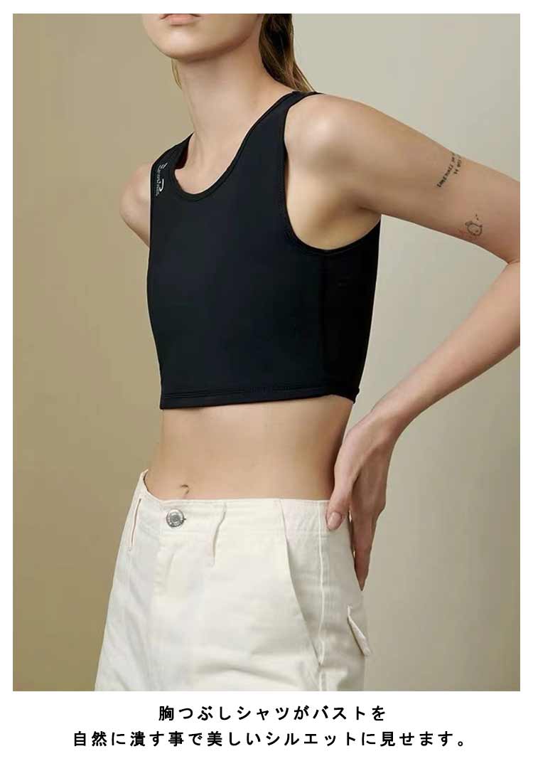 | 【胸を小さく見せるブラ】【揺れない】【S-4XL】 大きな胸で悩んでおられる方のための胸つぶしハーフトップです。 通気性の高いメッシュの使用と幅広く設計された肩の仕様で、着心地が良く長時間でも快適にご着用いただけます。 胸を高い弾力で抑えるので、スポーツ時の胸揺れ防止としても大活躍! 胸つぶしシャツがバストを自然に潰す事で美しいシルエットに見せます。 男装?コスプレ?スポーツ?和装などでも活躍してくれます? | |