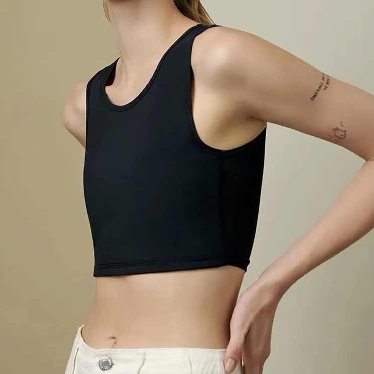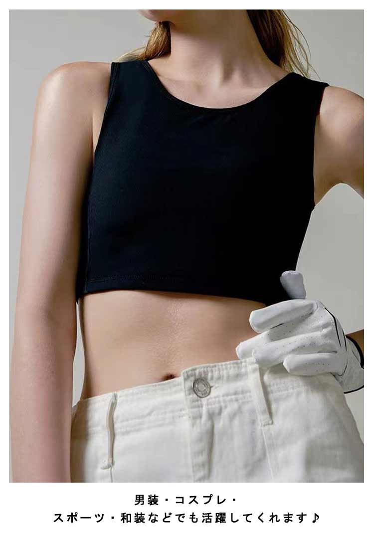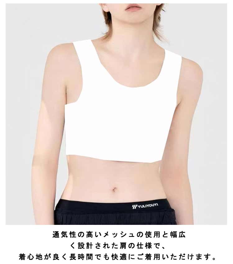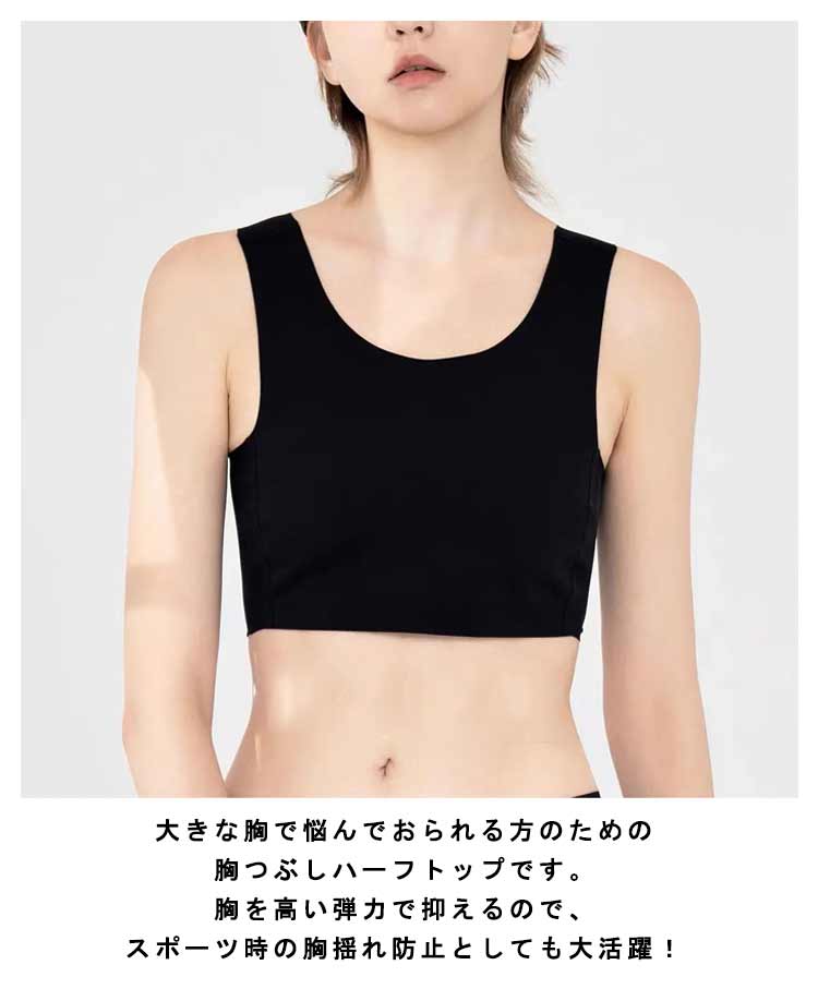 【胸を小さく見せるブラ】【揺れない】【S-4XL】大きな胸で悩んでおられる方のための胸つぶしハーフトップです。通気性の高いメッシュの使用と幅広く設計された肩の仕様で、着心地が良く長時間でも快適にご着用いただけます。胸を高い弾力で抑えるので、スポーツ時の胸揺れ防止としても大活躍!胸つぶしシャツがバストを自然に潰す事で美しいシルエットに見せます。男装・コスプレ・スポーツ・和装などでも活躍してくれます♪