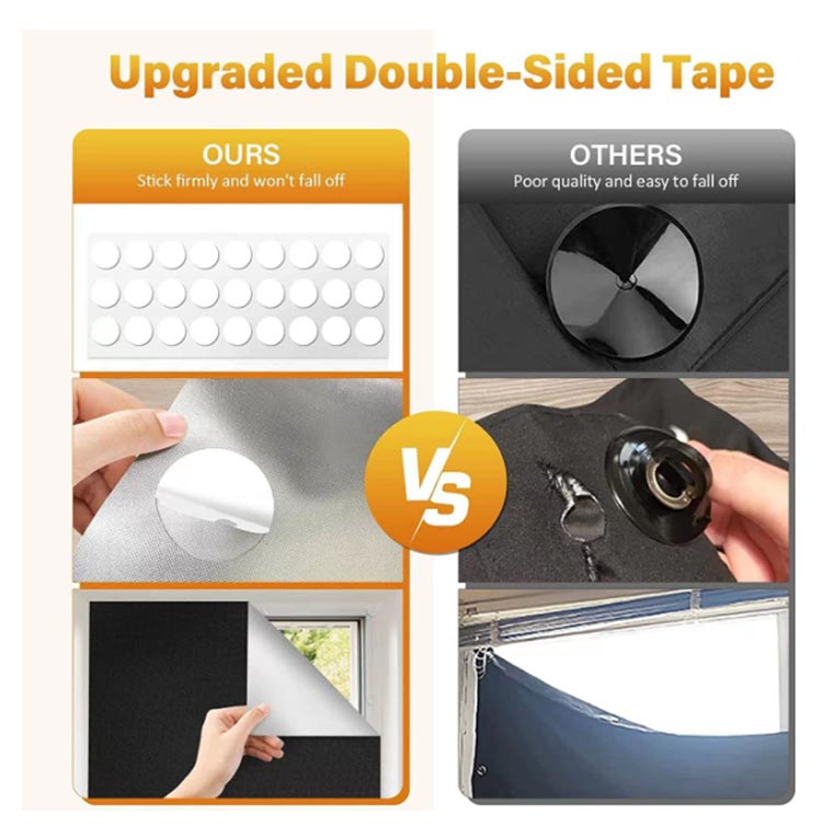 カーテンレールのない窓に最適!マジックテープ窓遮光シートが新登場。付属のマジック両面テープが付いて、どんな窓にも簡単に貼り付けることができます。窓のサイズを測って、必要な分だけ裁断したら何度も繰り返し使えます。防水効果もあるため、自宅の窓やバスルームのドアなど、テープが貼り付けられるところであればお好きにご使用していただけます。強い日差しを遮断し、UV96%以上カット。日焼けによる褪色・劣化から家具を守ります。室外陽光阻まれて、たとえ猛暑が続くても、薄暗く涼しい雰囲気を持っています。夏は強い日差しを遮断し室内温度の上昇を抑え、冬は室外の寒気を遮り、省エネ効果が期待できます。