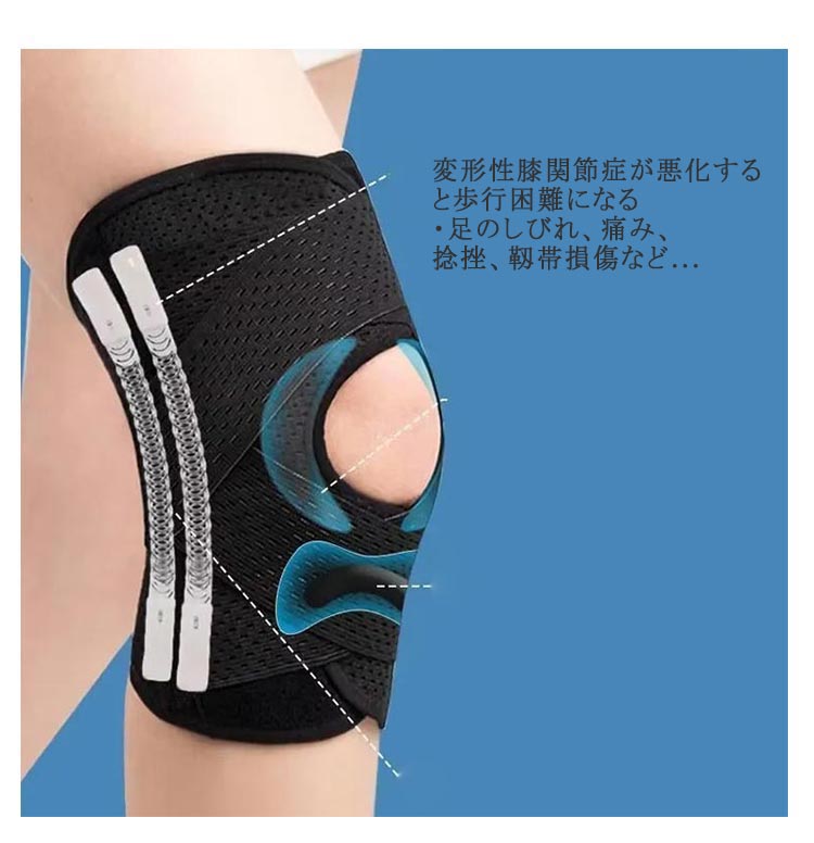 | こんな膝の痛みを抱えていませんか? ?膝への負担は体重の約3倍から4倍と言われている ?床を拭き掃除する時膝が心配 ?立ち座りがつらい ?スポーツをする時、ひざに負担がかかる ?膝の痛みを放置すると膝のクッションの役割をしている軟骨がすり減り、膝関節が変形して「変形性膝関節症」になってしまう可能性もある ?変形性膝関節症が悪化すると歩行困難になる ?足のしびれ、痛み、捻挫、靱帯損傷など... ■そんな悩みを抱えている方に【スターダスト ホーム】の膝サポーターがおすすめです。 | |