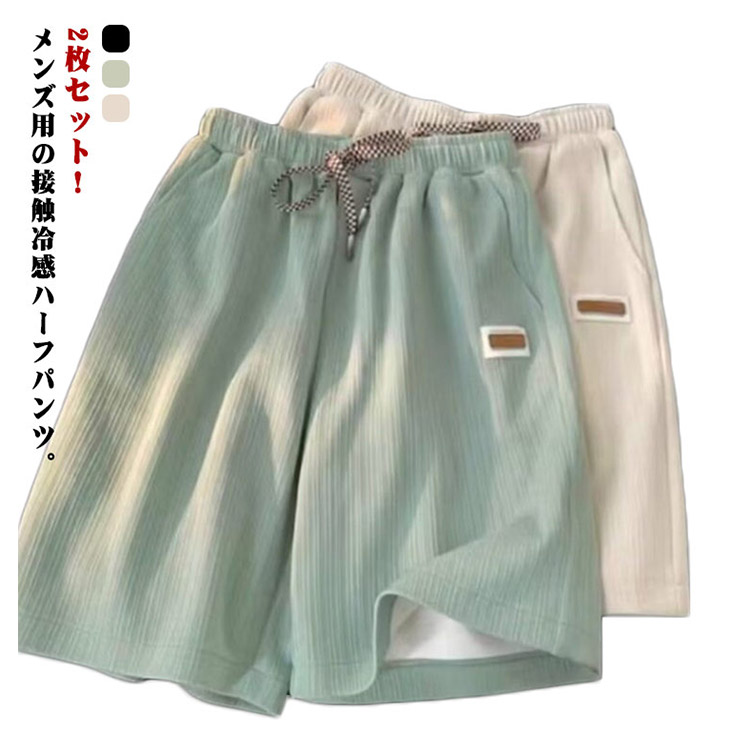 2枚セット!ハーフパンツ メンズ 接触冷感 アイスシルク パンツ 夏 涼感 涼しい 吸汗速乾 無地 通気 ストレッチ 5分丈パンツ 半ズボン ゆったり 大きいサイズ ウエストゴム ショートパンツ 短パン スポーツウェア ルームウェア 部屋着 カジュアル 送料無料
