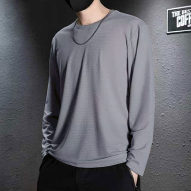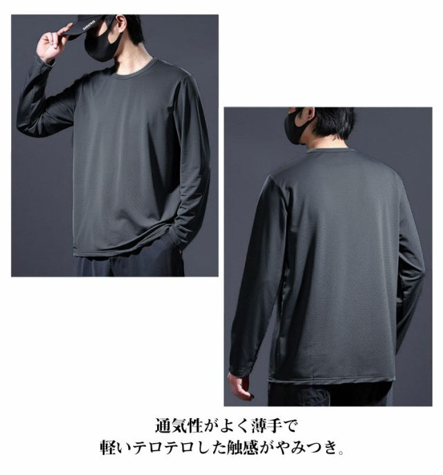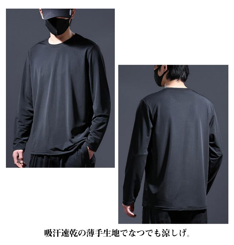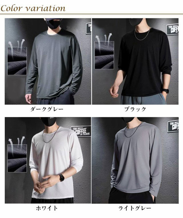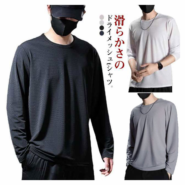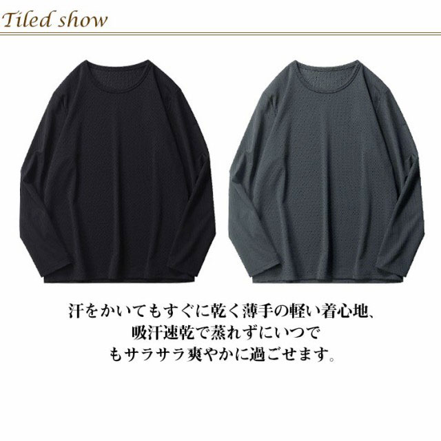 メッシュtシャツ ロングtシャツ メンズ 長袖 tシャツ 夏 涼しい ロンT ラウンドネック 冷感 トップス 速乾 通気 薄手 大きサイズ M-5XL ホワイト ブラック グレー
