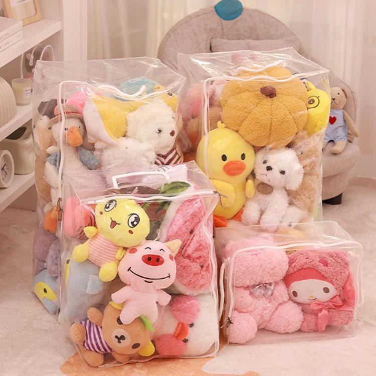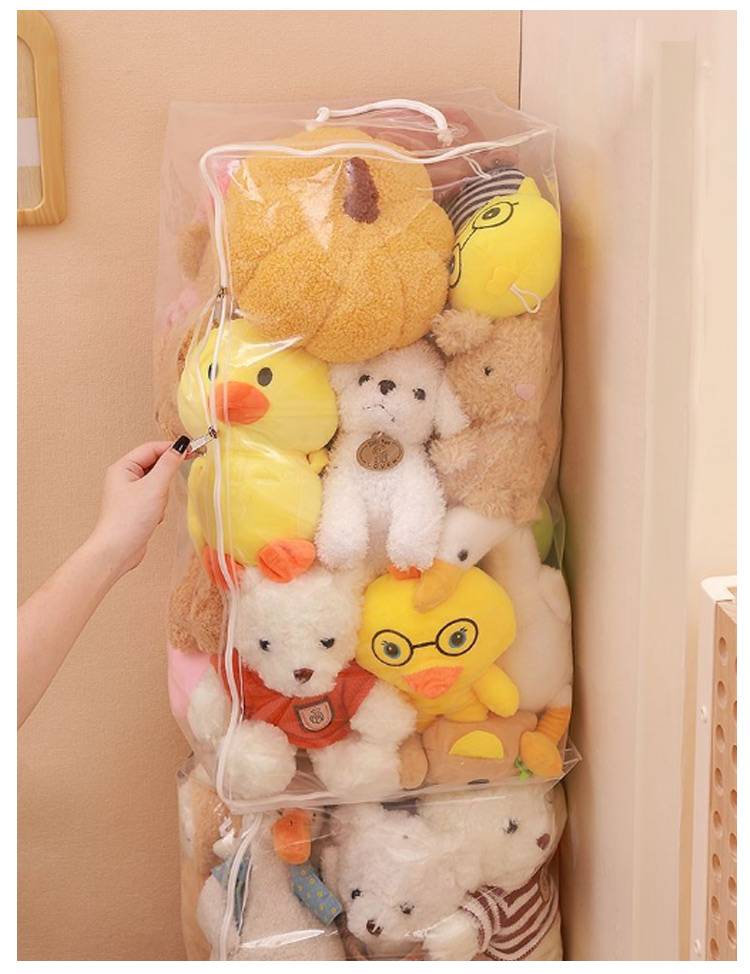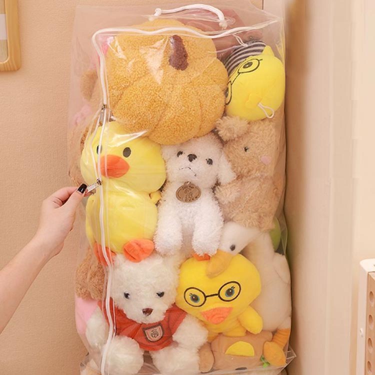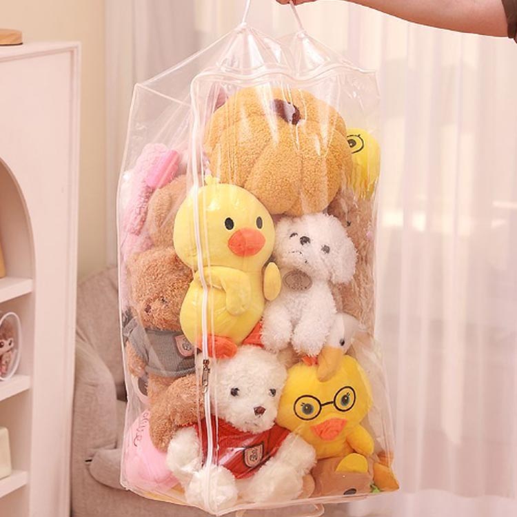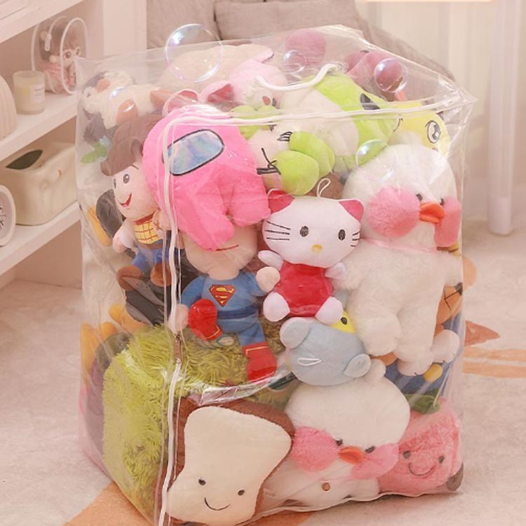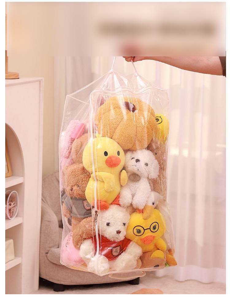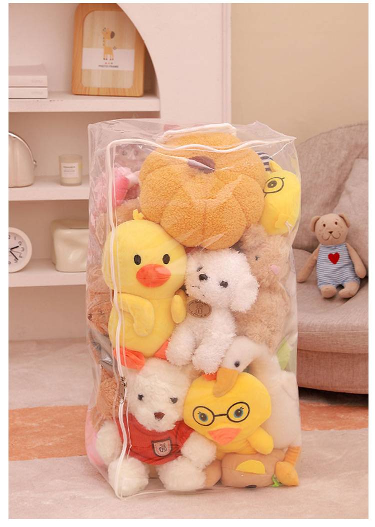 | まとめ収納可能? 見せながら収納できるぬいぐるみ収納袋。 防塵?防水素材で、お気に入りのぬいぐるみがいつも綺麗なまま保管できます。 クリアなので、中身が見えるから確認が簡単にできます。 玩具やぬいぐるみはもちろん、バッグ、ストール、マフラー、衣類、布団など様々な物を収納できる多機能収納ケースです。 | |