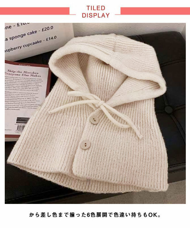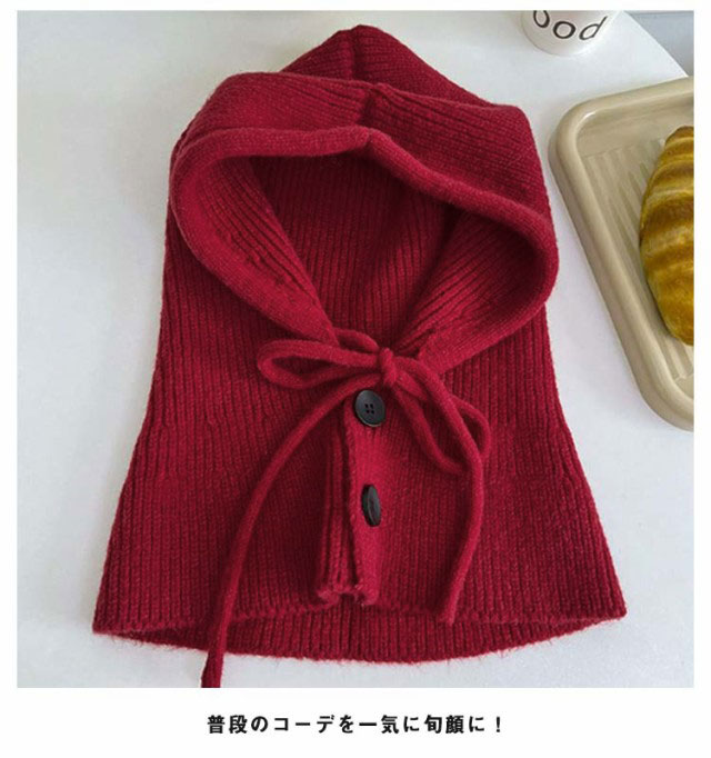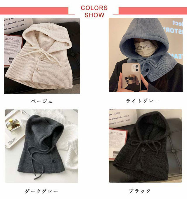 | 今季大注目のバラクラバニットフーディが登場! 帽子としてはもちろん、フード付きネックウォーマーにもなる2way仕様です。 もちもちした柔らかいニット素材で寒い日もあたたか? から差し色まで揃った6色展開で色違い持ちもOK。 普段のコーデを一気に旬顔に! | |