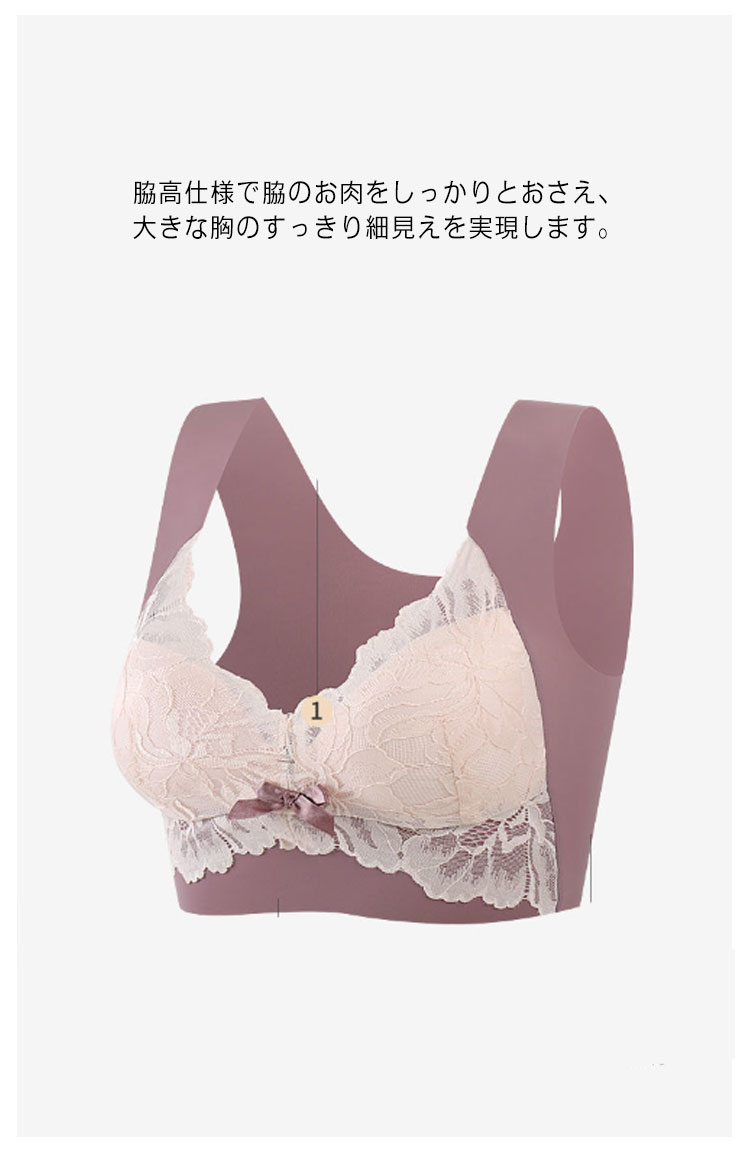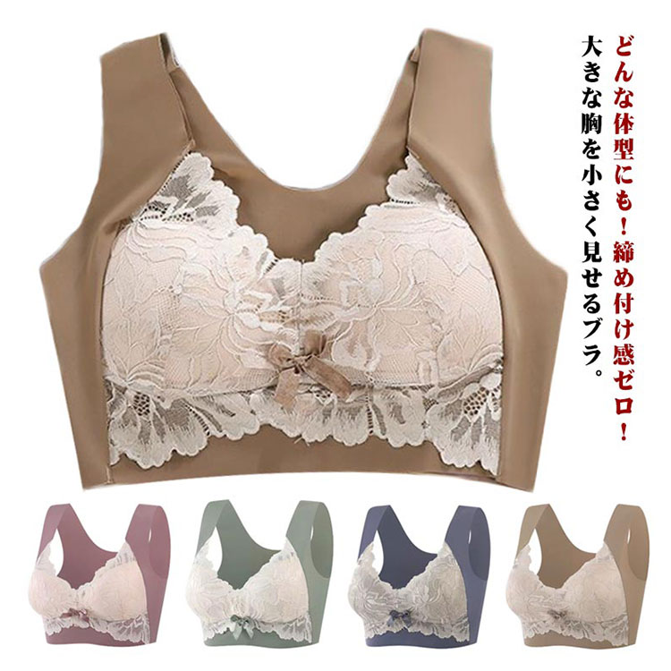 ブラジャー レディース 胸を小さく見せるブラ 小さく見せるブラジャー ノンワイヤー ブラ レース フルカップ 大きな胸を小さく見せるブラ 胸が小さく見えるブラ シームレス かわいい 脇高 補正下着 脇肉 背中 スッキリ 谷間メイク 送料無料