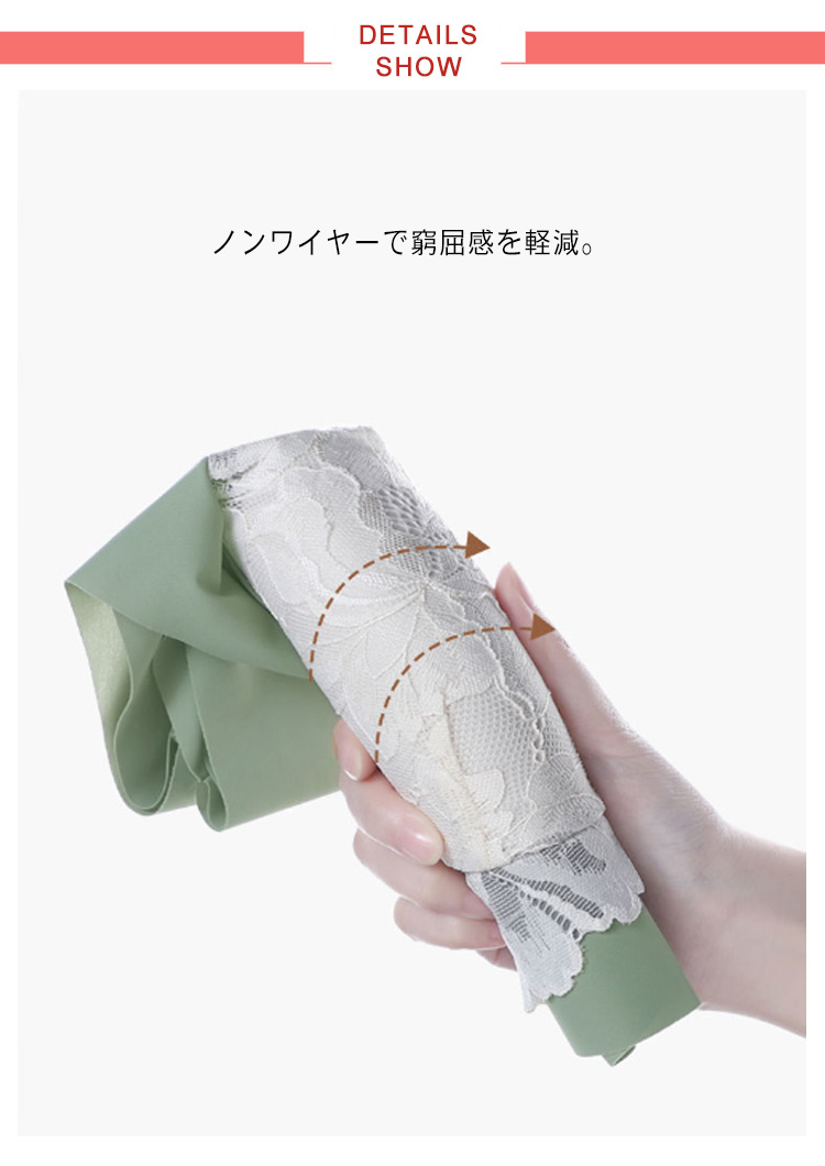 どんな体型にも!締め付け感ゼロ!大きな胸を小さく見せるブラ。伸びも良いのであらゆるバストを包み込みます。やや薄手のカップで、ボリュームが出すぎないのも嬉しいポイント。ノンワイヤーで窮屈感を軽減。花柄レースがしっかり胸をつつんで綺麗なシルエットを作ります。脇高仕様で脇のお肉をしっかりとおさえ、大きな胸のすっきり細見えを実現します。ストラップも太目仕様なので、肩への食い込みも軽減されます。