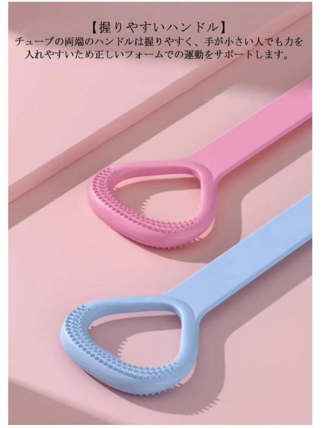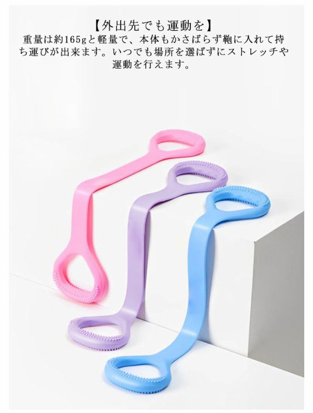 【狙った部位を集中的にアプローチ】チューブの張力を利用して二の腕・体幹・お尻などの気になる部分を集中的にトレーニングできます。普段のエクササイズにプラスするだけで運動効果アップし、気になる部位をピンポイントで引き締めます。【筋トレから気軽なストレッチまで】チューブ1つで多彩な運動が可能です。腹膜のストレッチから二の腕・お尻・体幹のトレーニングまでマルチにこなせるトレーニングチューブです。【握りやすいハンドル】チューブの両端のハンドルは握りやすく、手が小さい人でも力を入れやすいため正しいフォームでの運動をサポートします。【外出先でも運動を】重量は約165gと軽量で、本体もかさばらず鞄に入れて持ち運びが出来ます。いつでも場所を選ばずにストレッチや運動を行えます。