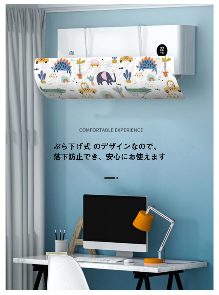エアコンの直撃風を解消する風よけカバーですぶら下げ式 のデザインなので、落下防止でき、安心にお使えます取り付けやすい、簡単に調整できます風向き角度調節可:180度回転可通気穴がついて、結露改善ことができます冷房・暖房のどちらにも使用でき、オールシーズン対応できますエアコンからの直撃風を解消し、快適な室内環境を作ってくれます風邪や頭痛などの症状が予防できて、家族の健康を守ることができます柄も可愛くて、実用性とファッション性が備え、直風を防ぐ目的にはとても 重宝します