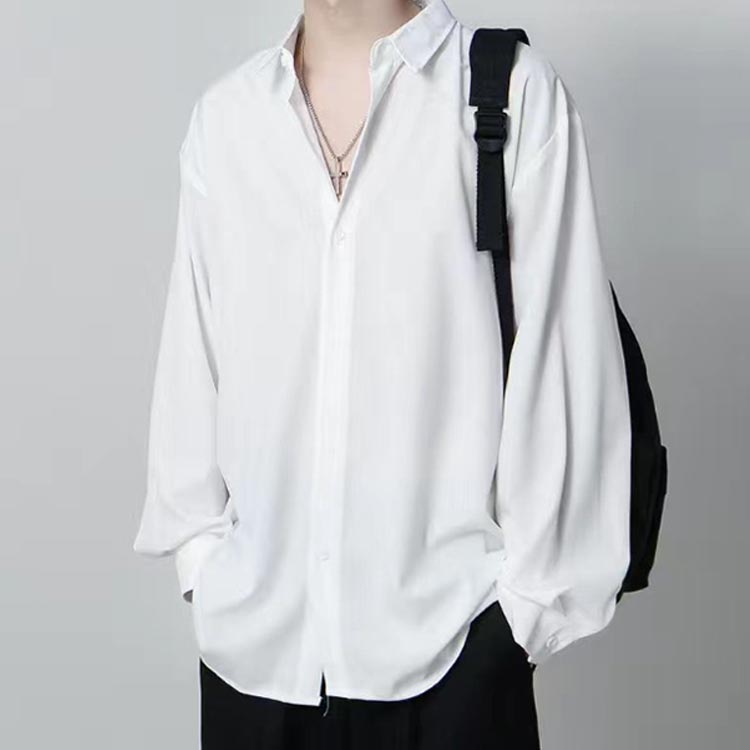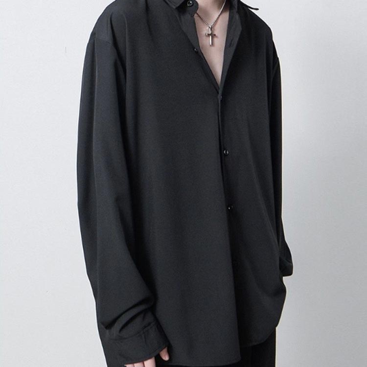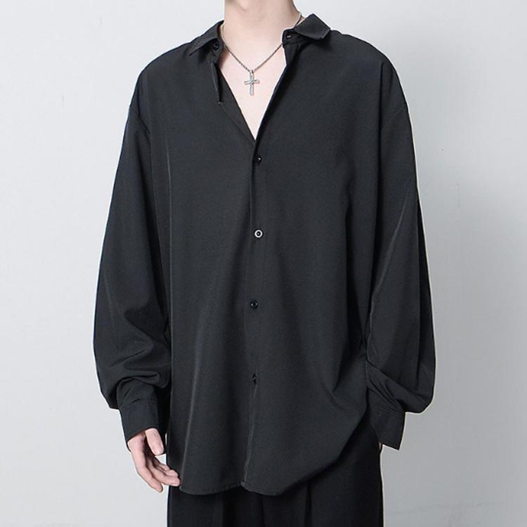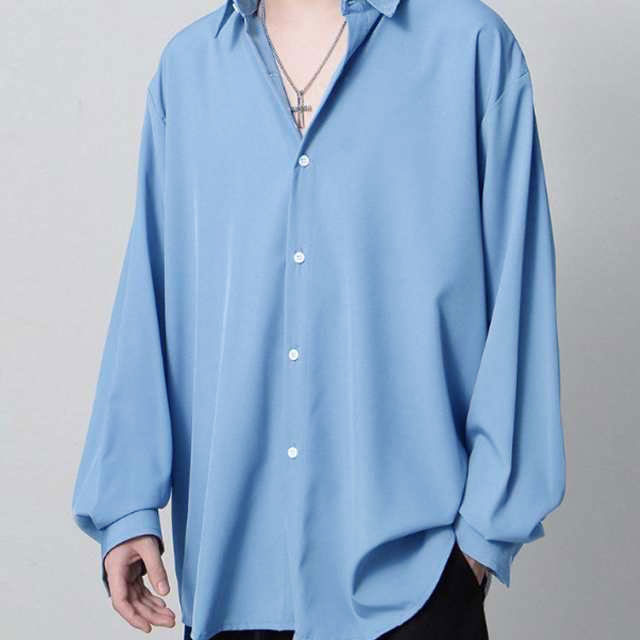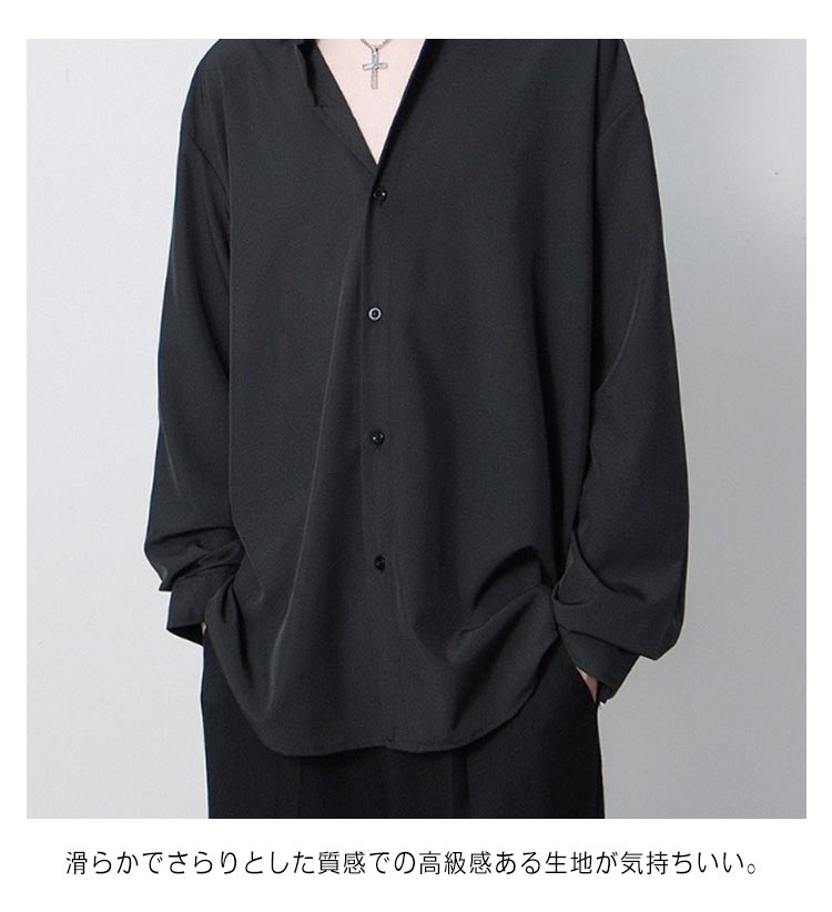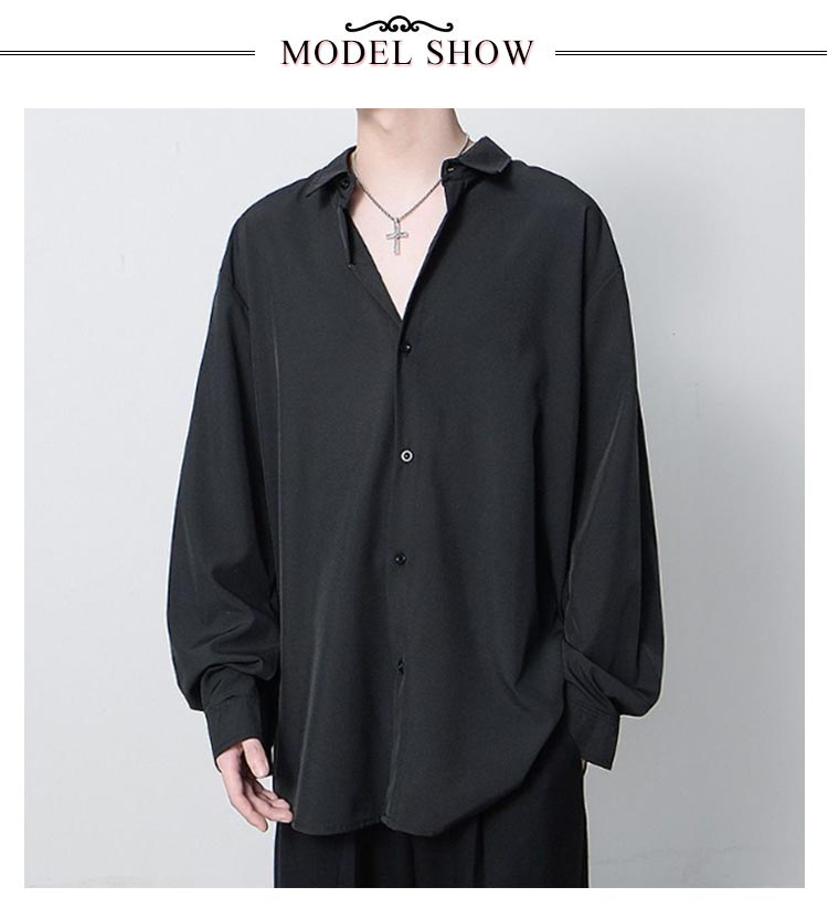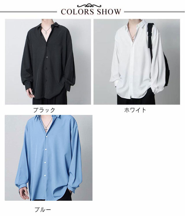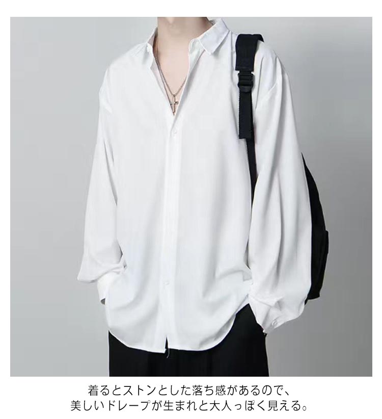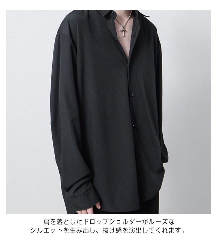 【2枚組】 シャツ メンズ 長袖 黒 白 カジュアルシャツ ゆるシャツ とろみシャツ 女性 男性 ドロップショルダー 無地 シンプル トップス 開襟シャツ ゆったり ビッグシルエット ワークシャツ 羽織 春夏 春服 夏服 ストリート系 原宿系 韓国ファッション