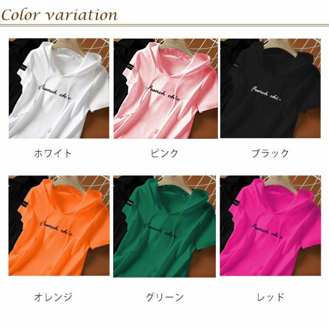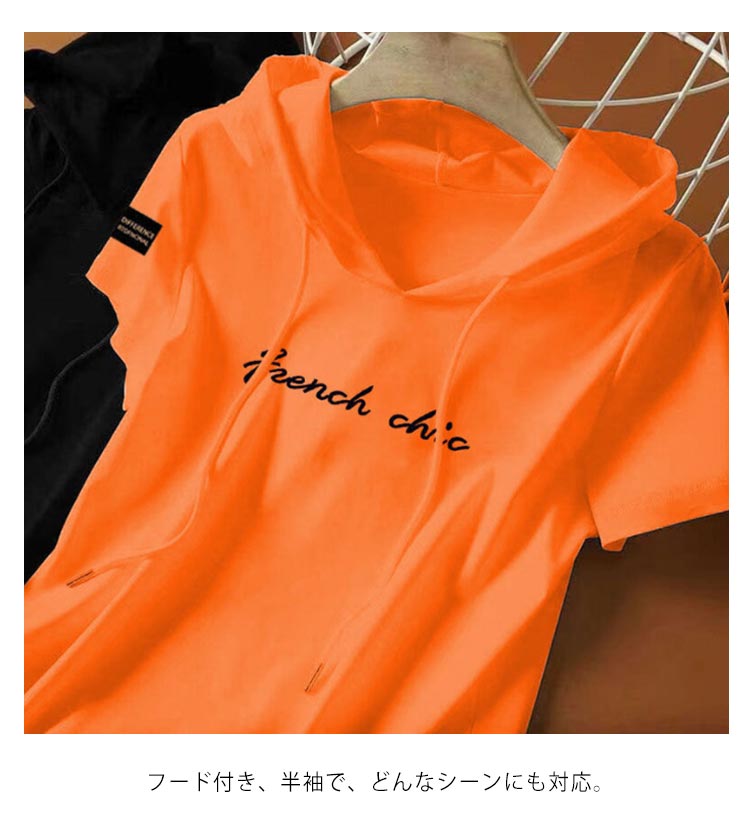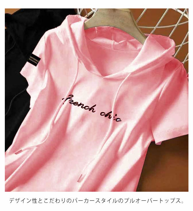 パーカー tシャツ レディース 半袖 パーカー フード付きtシャツ プルオーバー トップス 薄手 春 夏 フーディー Tシャツ プリント ロゴ フード カットソー テーシャツ シンプル 大きいサイズ カジュアル 送料無料