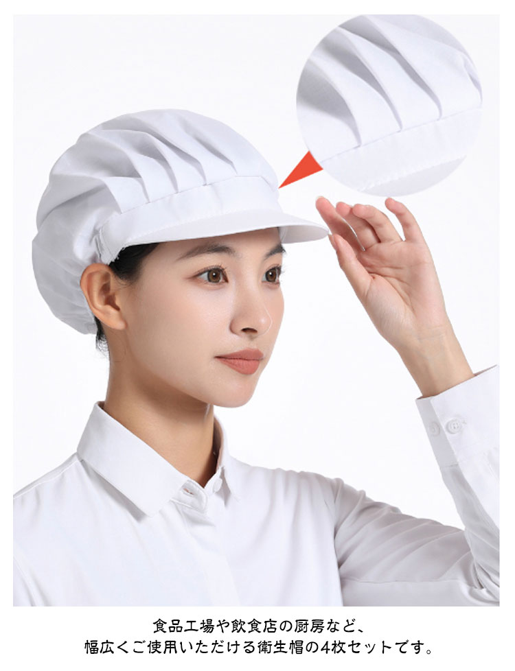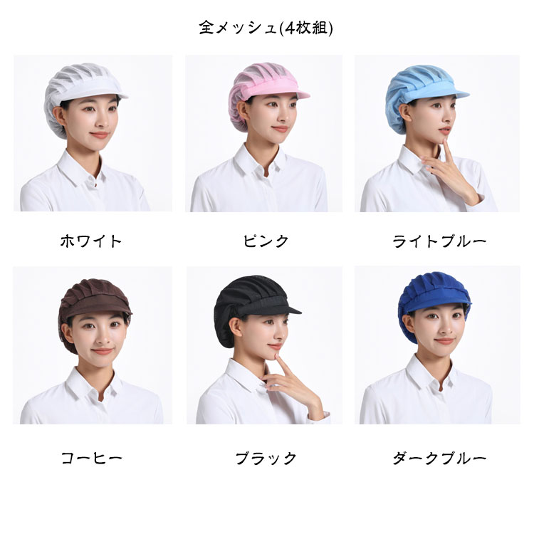 衛生キャップ 4枚セット キッチン 衛生帽 メッシュ つば付き 給食帽 洗濯可能 工場 通気性 業務用 調理帽子 飲食店 作業用 清潔 料理 家庭 飲食 調理用帽子 作業帽子 食品工場 厨房 キッチン帽子 選べる3種類