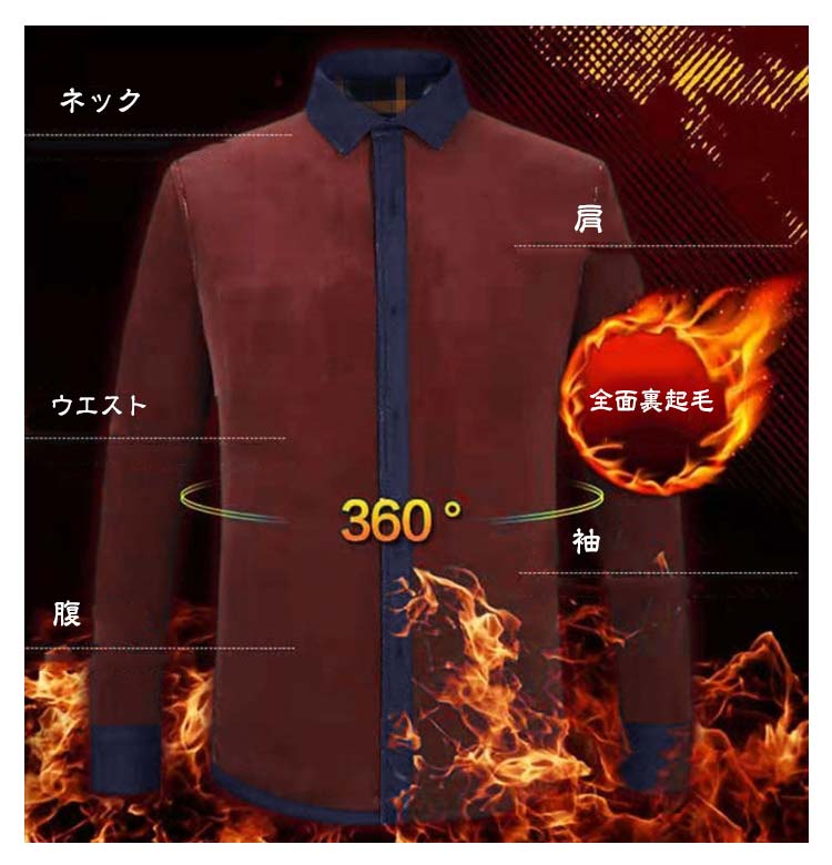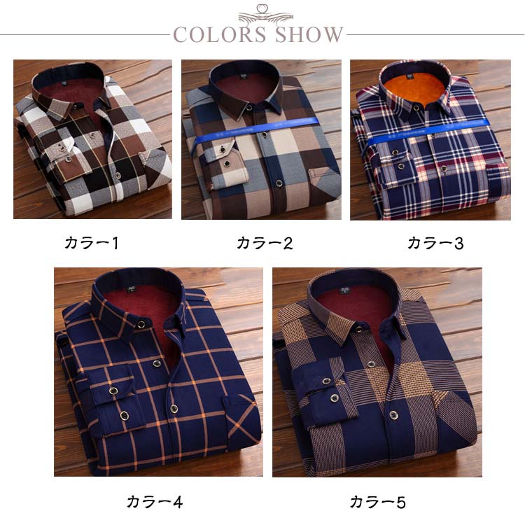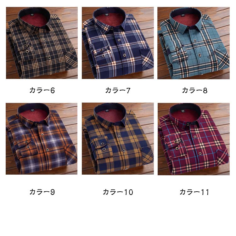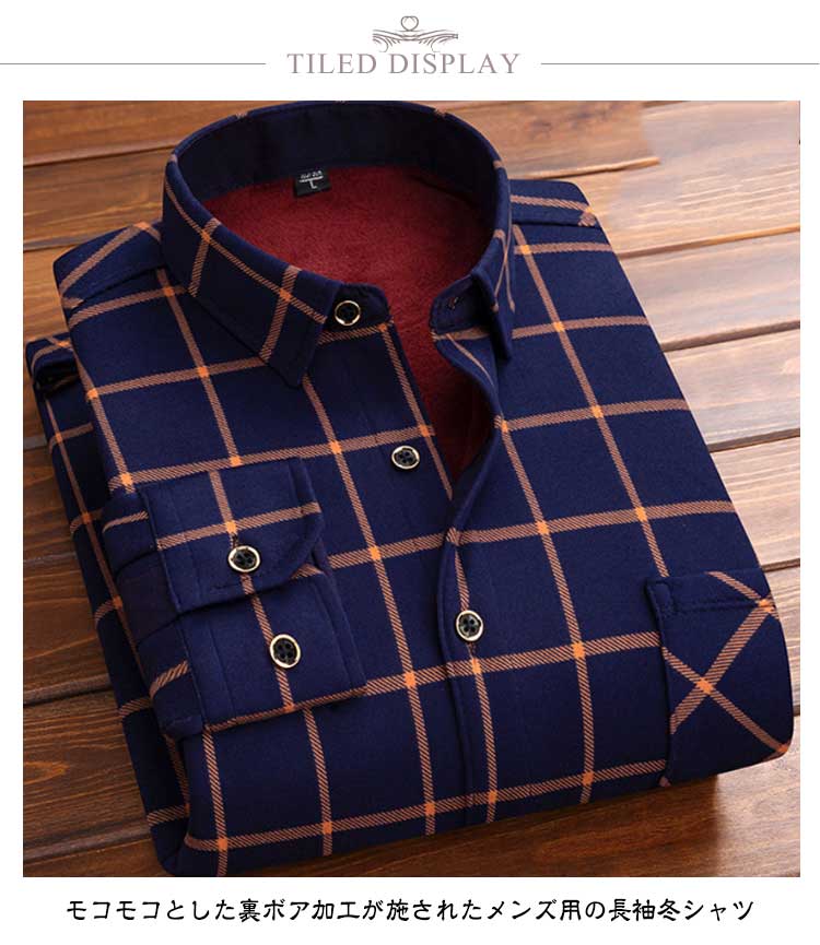 | 11色 モコモコとした裏ボア加工が施されたメンズ用の長袖冬シャツ | |