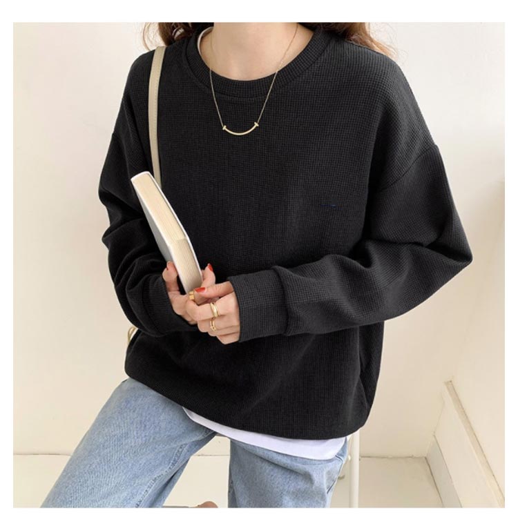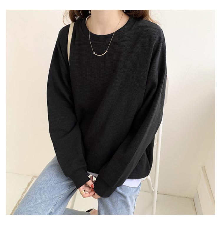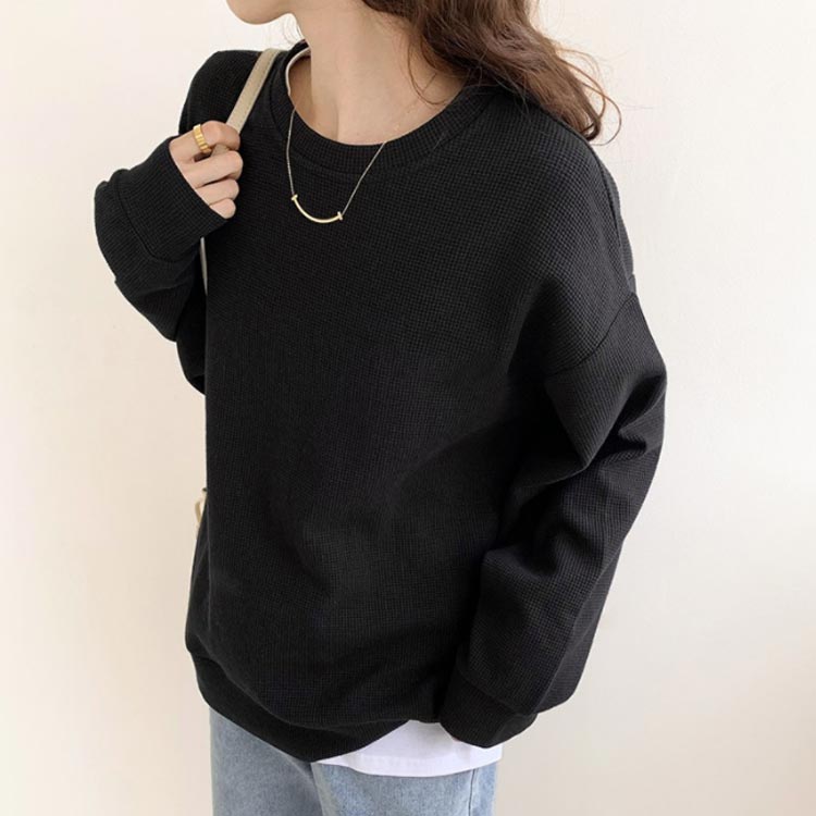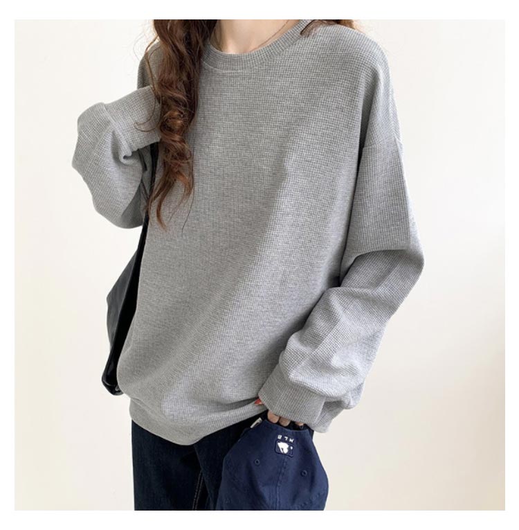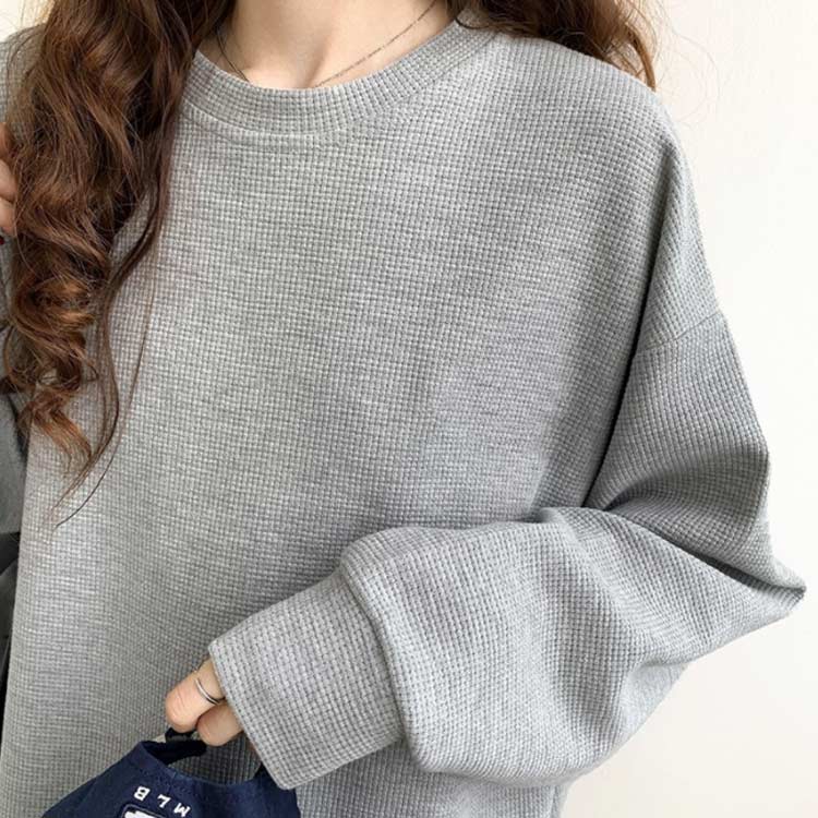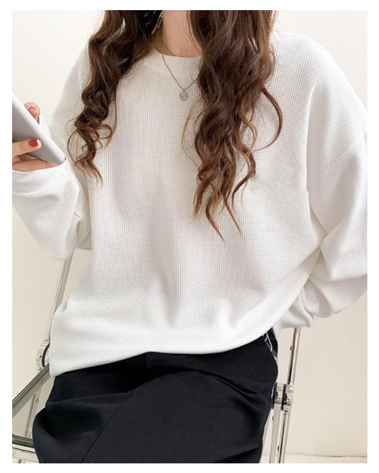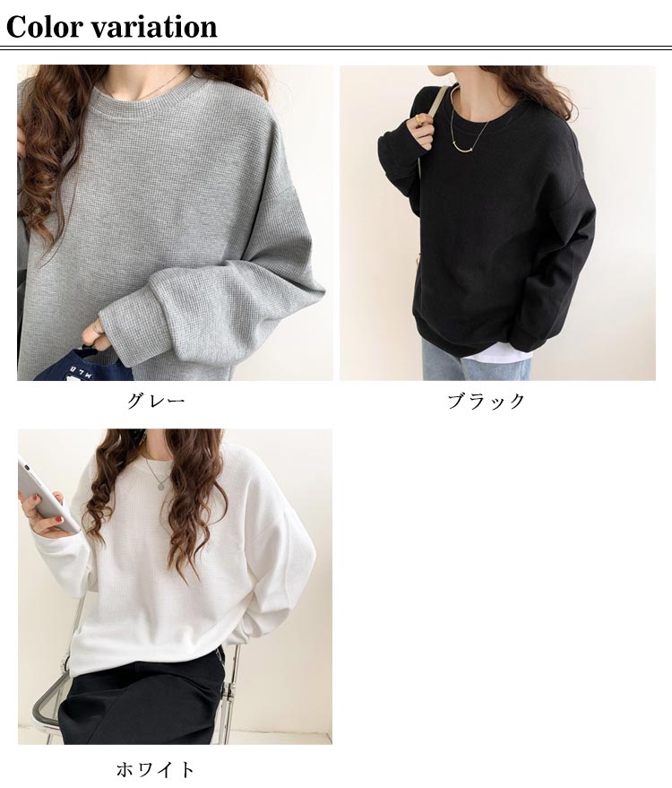 ワッフル トップス レディース トレーナー カットソー ロンT 春 ゆったり 大きいサイズ オーバーサイズ 韓国 長袖 ドロップショルダー プルオーバー スウェット 体型カバー Tシャツ クルーネック シンプル 無地 カジュアル 抜け感
