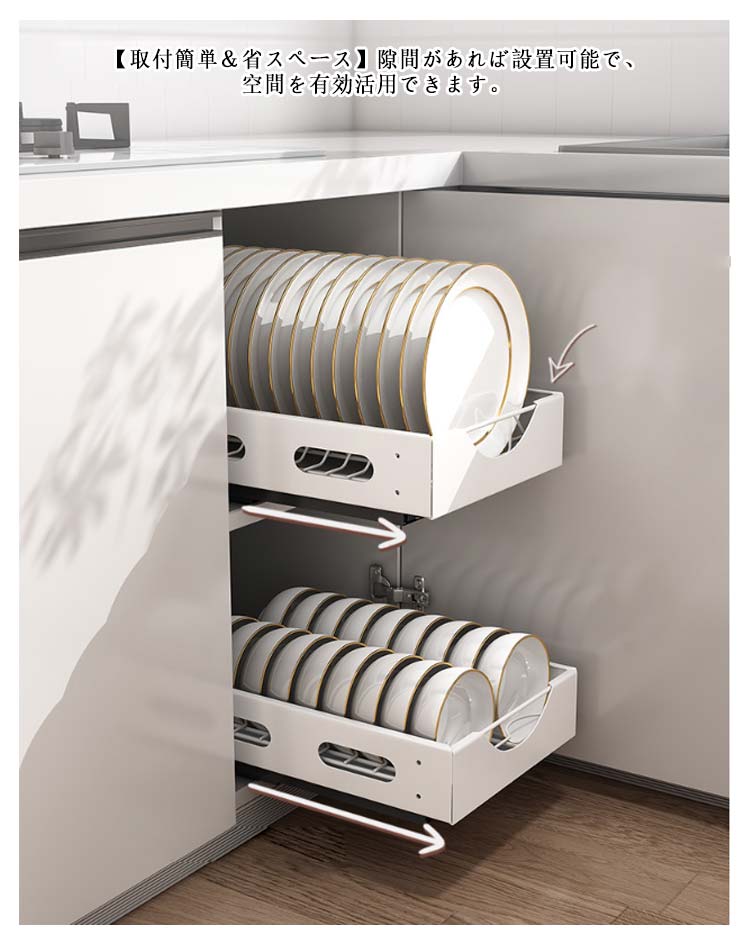 シンク下 水切りラック お皿立て 皿 茶碗 食器収納ラック 食器棚 食器立て ディッシュスタンド スライド式 引き出し 設置簡単 大容量 キッチン整理整頓 お皿収納ラック お碗収納ラック 水切りかご キッチン 収納 食器乾燥ラック