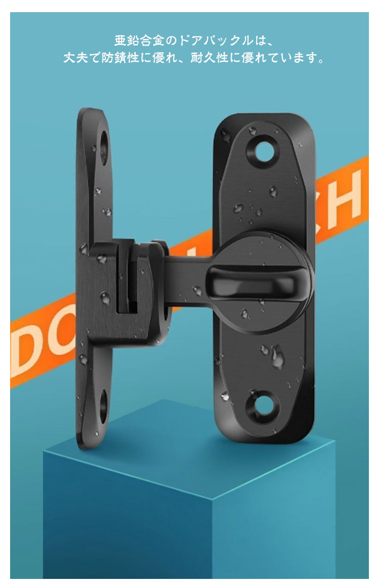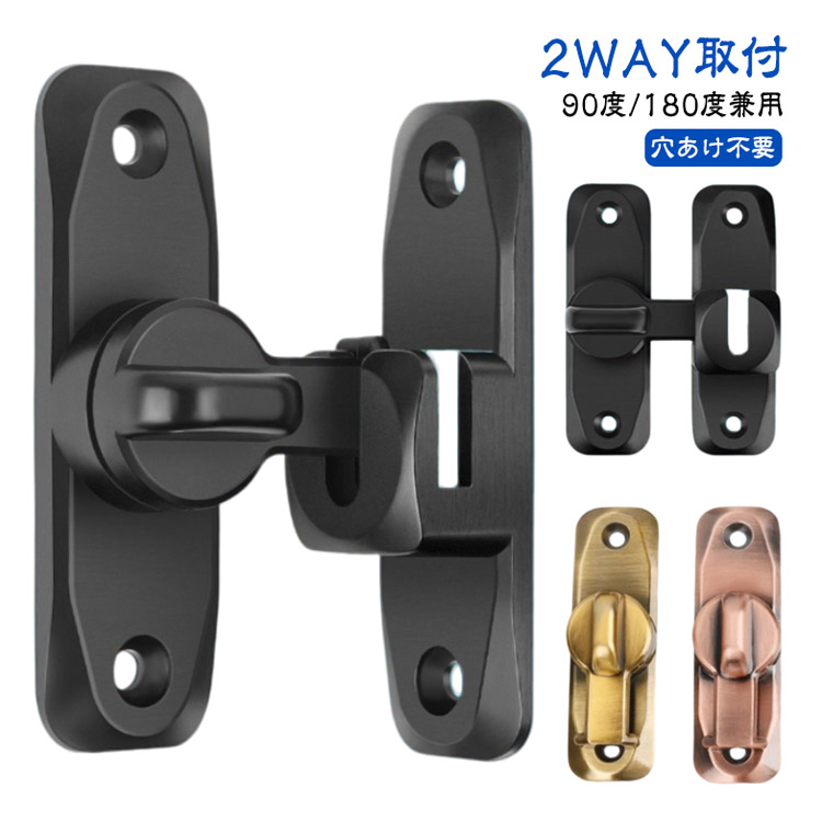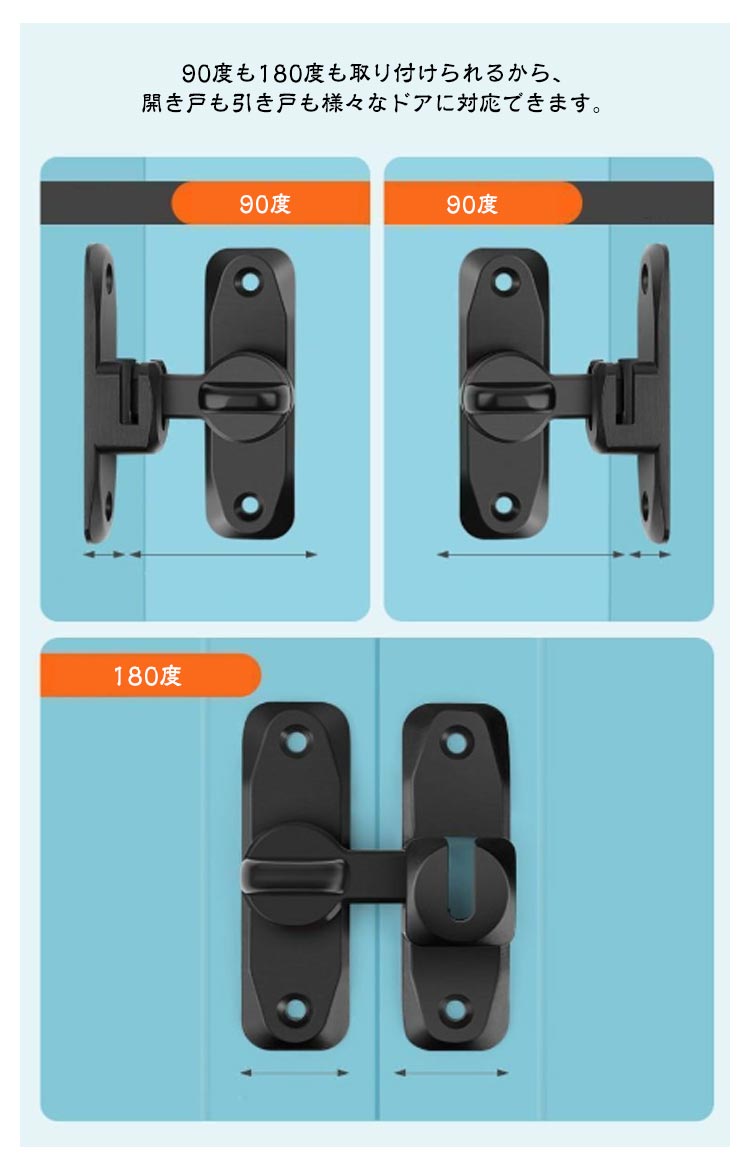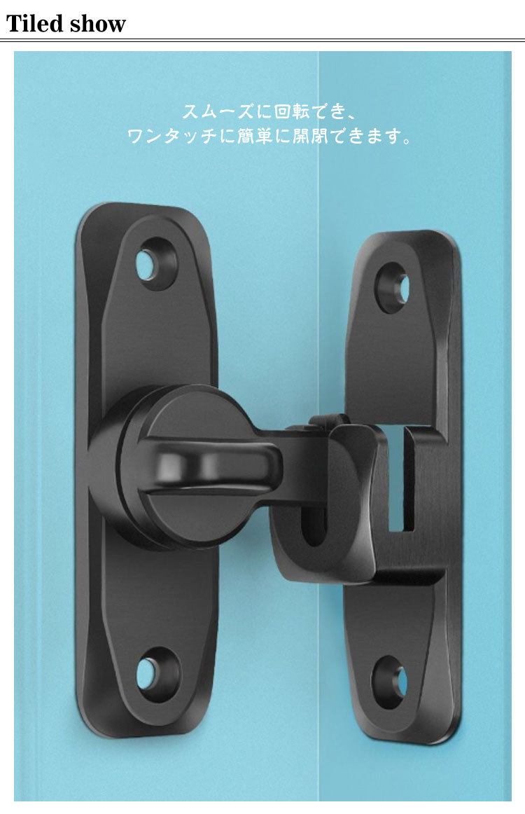 【90度/180度兼用】引き戸 鍵 後付け 穴あけ不要 ドアロック 亜鉛合金 ドア留め金ロック 回転式 スライディングドア ストッパー フリップラッチ 引き戸 鍵 ロック 防犯 部屋 窓 玄関用 ドアバックル 引き戸用鍵 窓ロック 扉ロック キャビネットロック