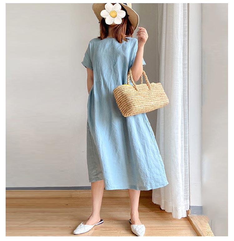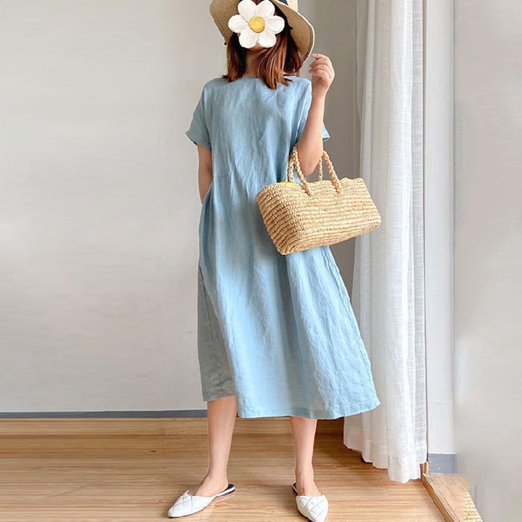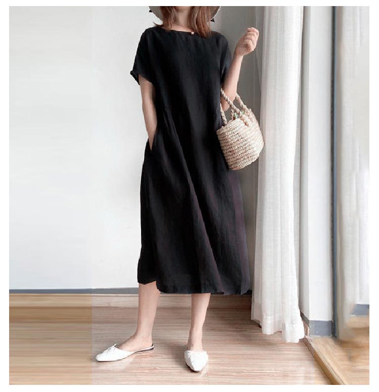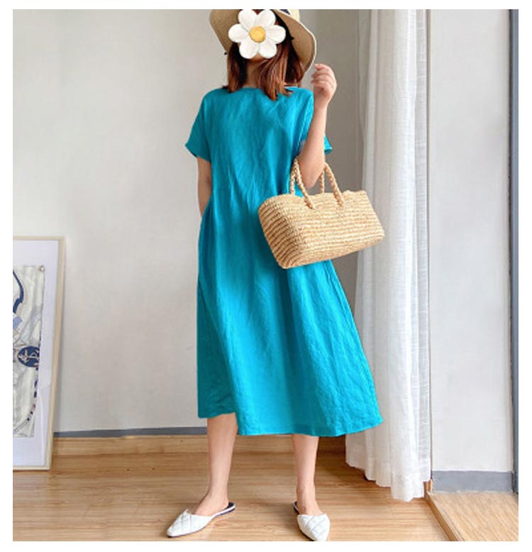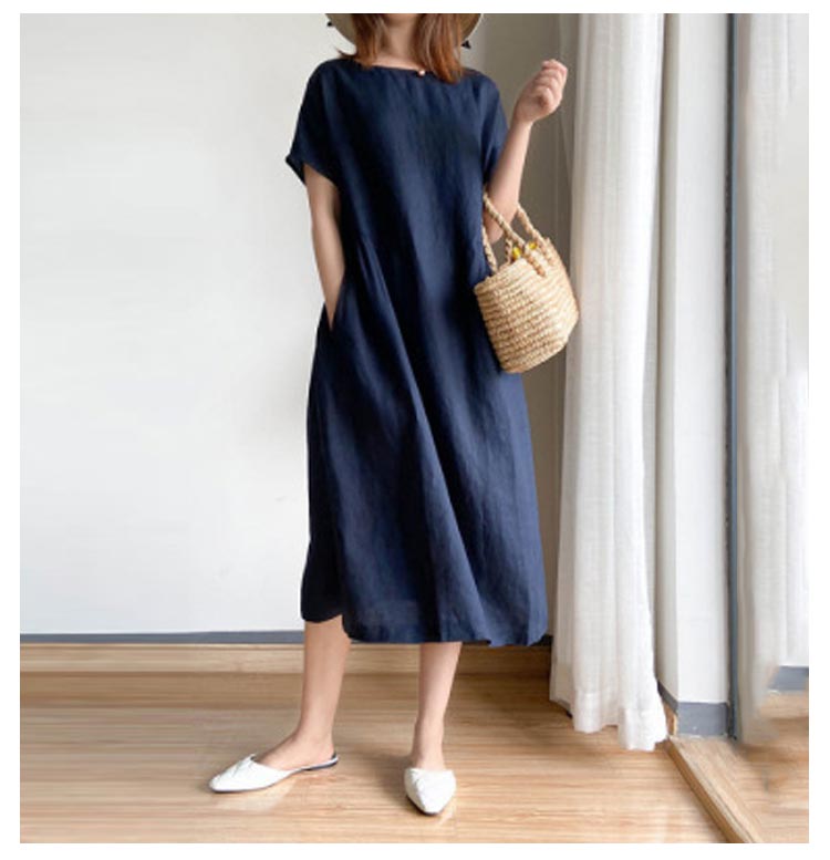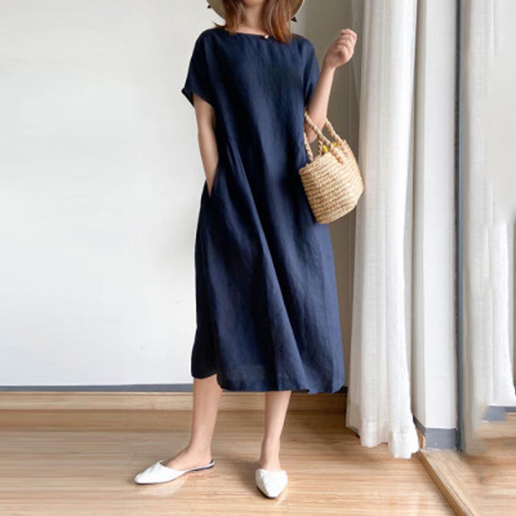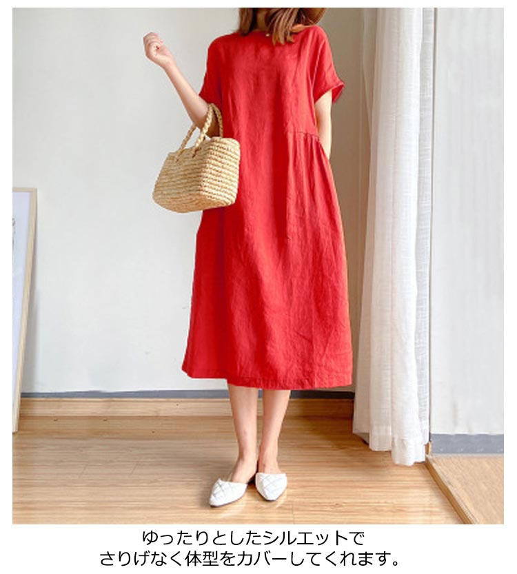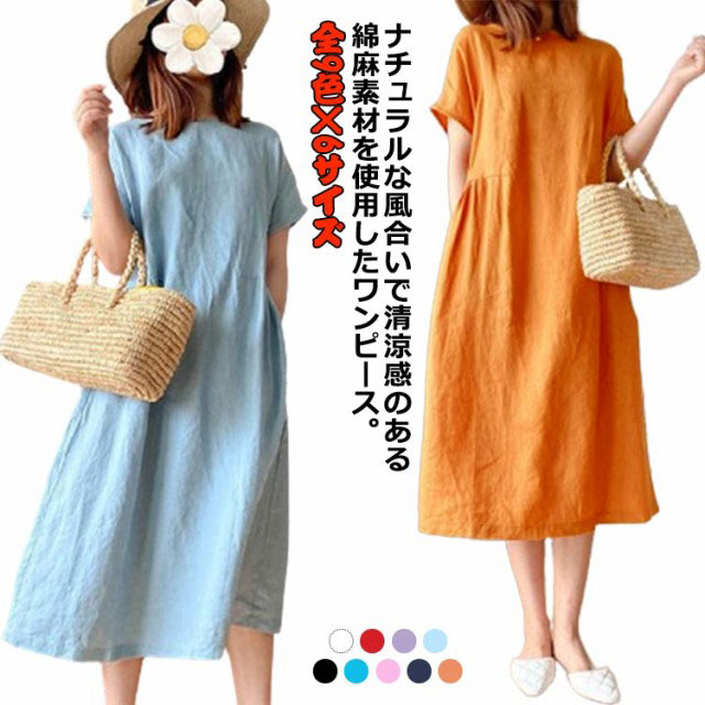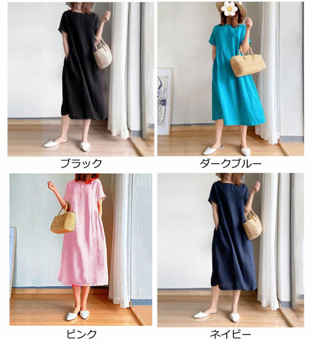 半袖 ワンピース レディース きれいめ シンプル ゆったり ワンピース レディース 夏 黒 半袖 青 大きいサイズ ロング丈 ワンピース ナチュラル シンプル 綿 コットン リネン 無地 体型カバー 大人 30代 40代 50代 春 カジュアル 可愛い おしゃれ 送料無料