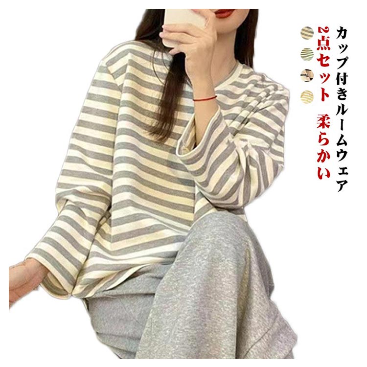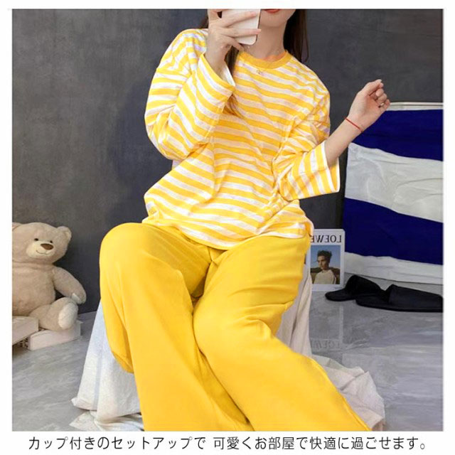 ルームウェア カップ付き カップ付き パジャマ 長袖 ロングパンツ 長ズボン カップ付 tシャツ ルームウェア レディース 夏 2点セット セットアップ スウェット 半袖 ナイトウェア 部屋着 柔らかい 可愛い 春 夏 秋 母の日 送料無料