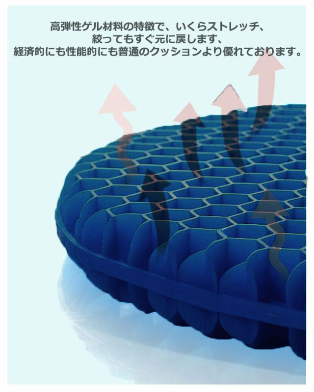 ゲルクッション ジェルクッション 二重 ハニカム 座布団 椅子用 丸椅子 回転椅子 クッション 無重力 テレワーク 骨盤矯正 体圧分散 腰痛 衝撃吸収 二重ハニカム構造 シリコン 送料無料