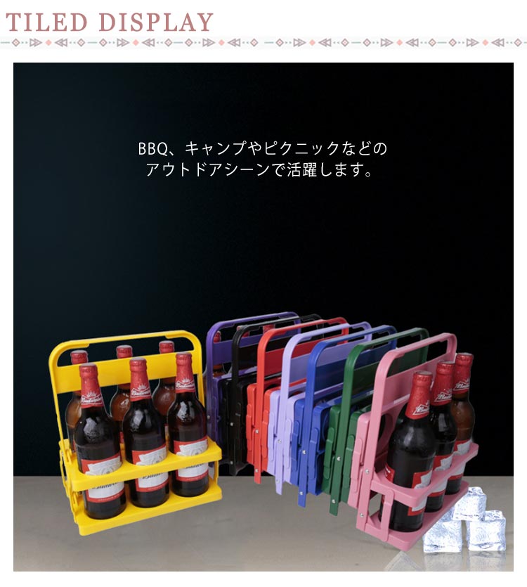 | 6本収納可能なボトルキャリー BBQ、キャンプやピクニックなどのアウトドアシーンで活躍します。 使用時以外は折りたたんで収納可能で便利です。 | |