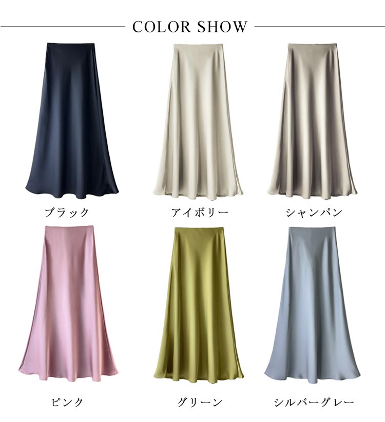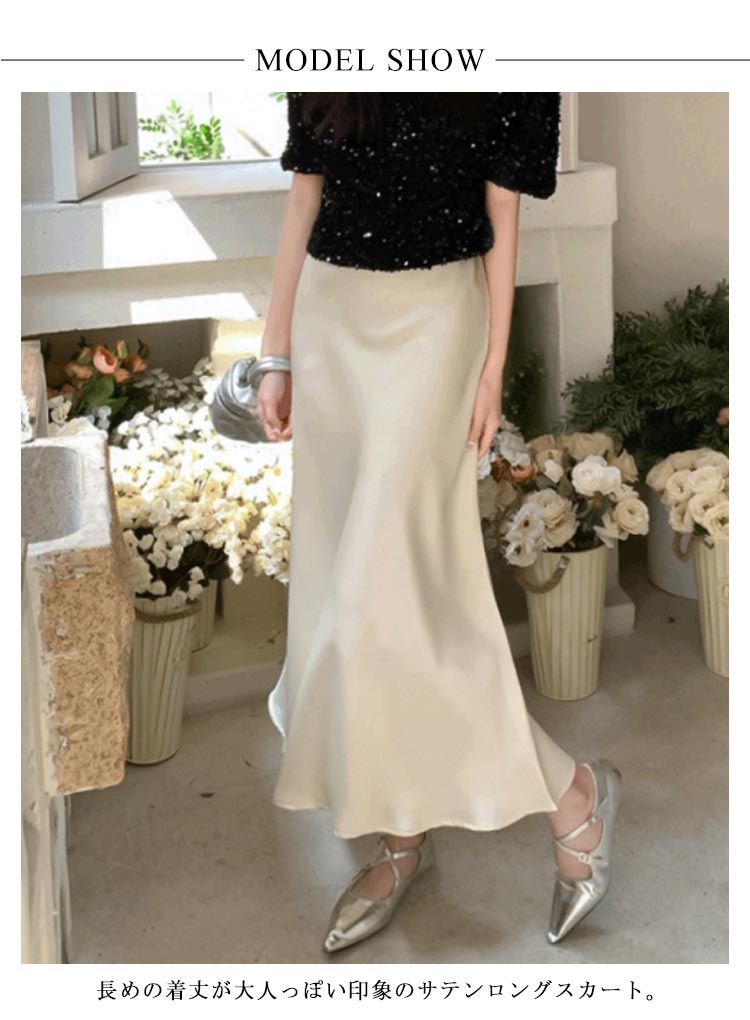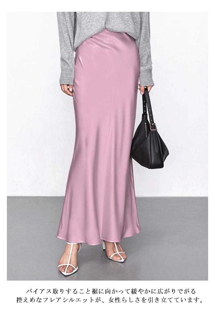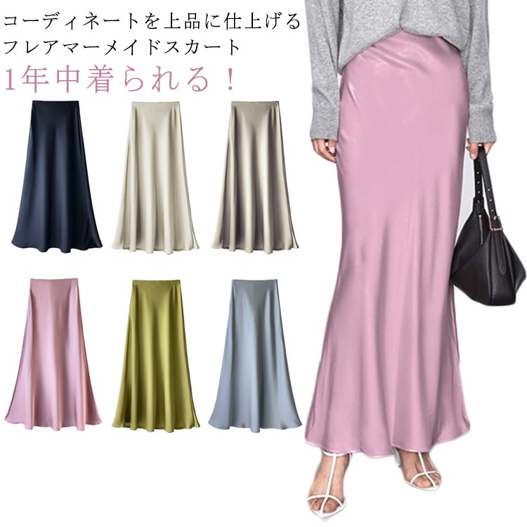 マーメイドスカート サテン レディース スカート フレア ロングスカート マキシ丈 マーメイド 落ち感 とろみ 光沢感 上品 大人 フェミニン エレガント 通勤 体型カバー 冷感 涼感 韓国風 きれいめ 20代 30代 40代 50代 無地 おしゃれ
