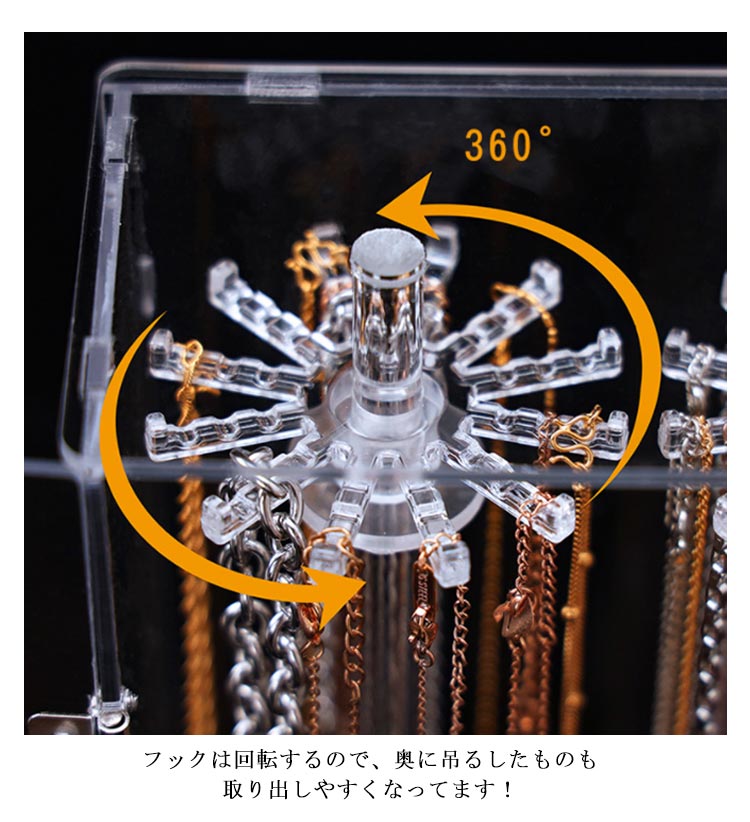 ネックレスケース ジュエス ジュエリーケース ネックレススタンド 回転式ネックレスケース 絡まない 透明 アクリルケース ジュエリー ピアス イヤリング ネックレス収納 最大72本 アクセサリーケース クリア ディスプレイ コレクションケース