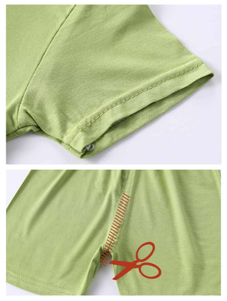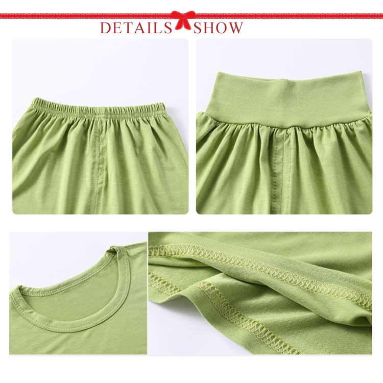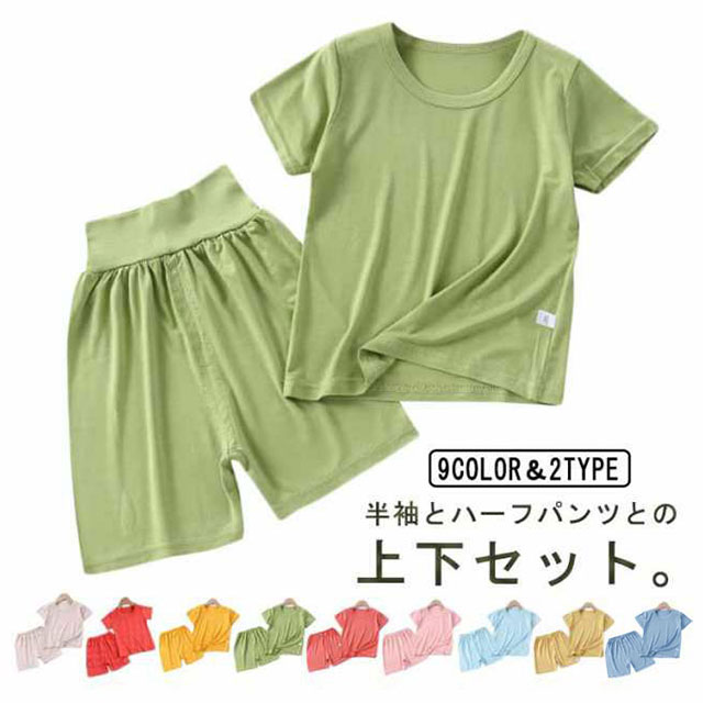 半袖とハーフパンツとの上下セット。ほどよい伸縮性があるので着心地の良いTシャツパジャマです。肌触りの良い柔らかな風合いが特徴です。パジャマとしてはもちろん、部屋着として着用しても可愛い!伸縮性が抜群で動きやすいので、日中のおうち時間も、夜のおやすみ中もパジャマとしてノンストレスで快適に過ごせます。
