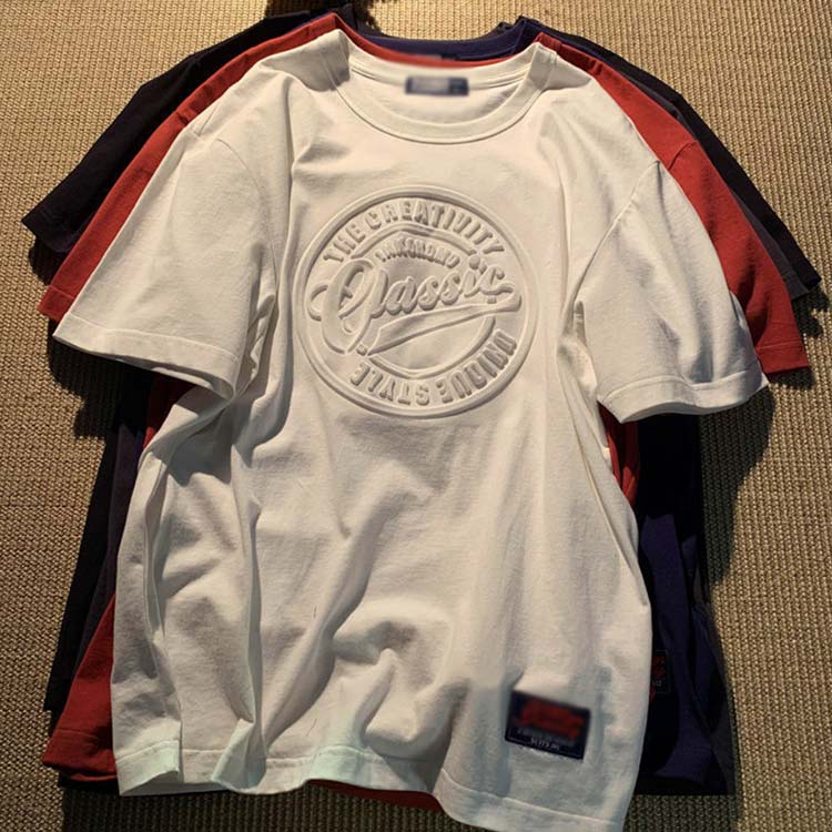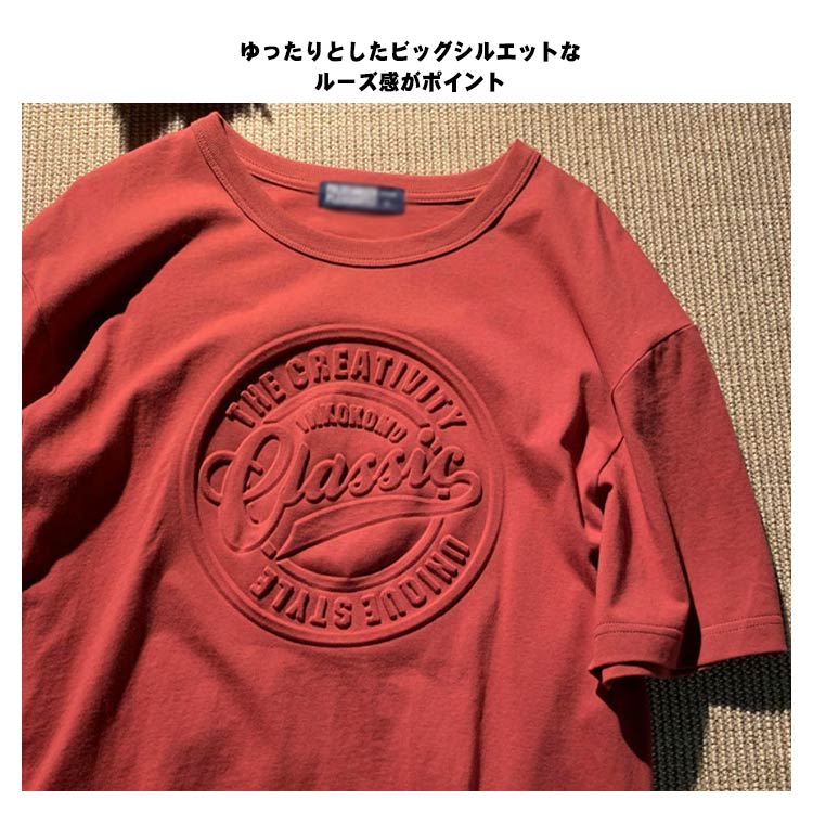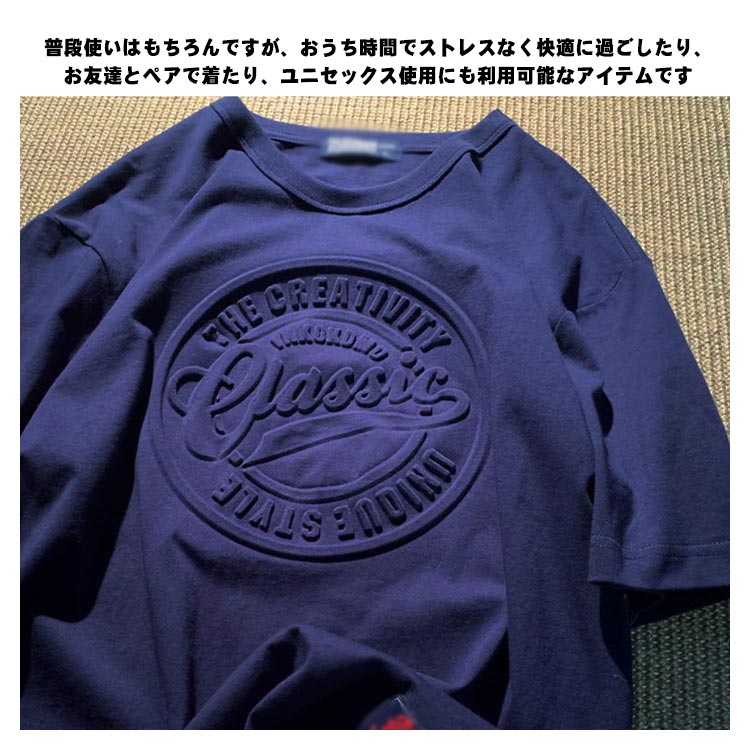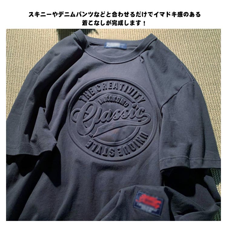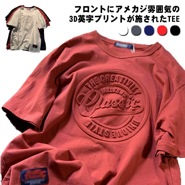 【送料無料】tシャツ カットソー 半袖 アメカジ メンズ 古着風 英字 3Dプリント 無地 シンプル レトロ トップス アメリカン おしゃれ ストリート カジュアル ワンポイント 大きいサイズ ネイビー 紺 グレー 白 黒