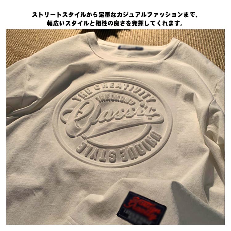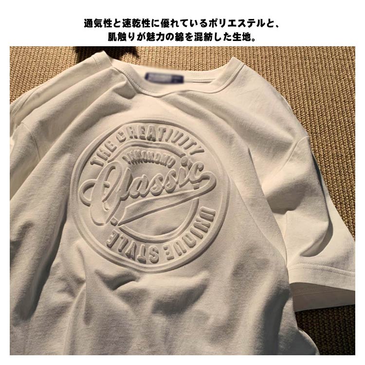 フロントにアメカジ雰囲気の3D英字プリントが施されたTEE。ゆったりとしたビッグシルエットなルーズ感がポイント。通気性と速乾性に優れているポリエステルと、肌触りが魅力の綿を混紡した生地。ストリートスタイルから定番なカジュアルファッションまで、幅広いスタイルと相性の良さを発揮してくれます。スキニーやデニムパンツなどと合わせるだけでイマドキ感のある着こなしが完成します!普段使いはもちろんですが、おうち時間でストレスなく快適に過ごしたり、お友達とペアで着たり、ユニセックス使用にも利用可能なアイテムです。
