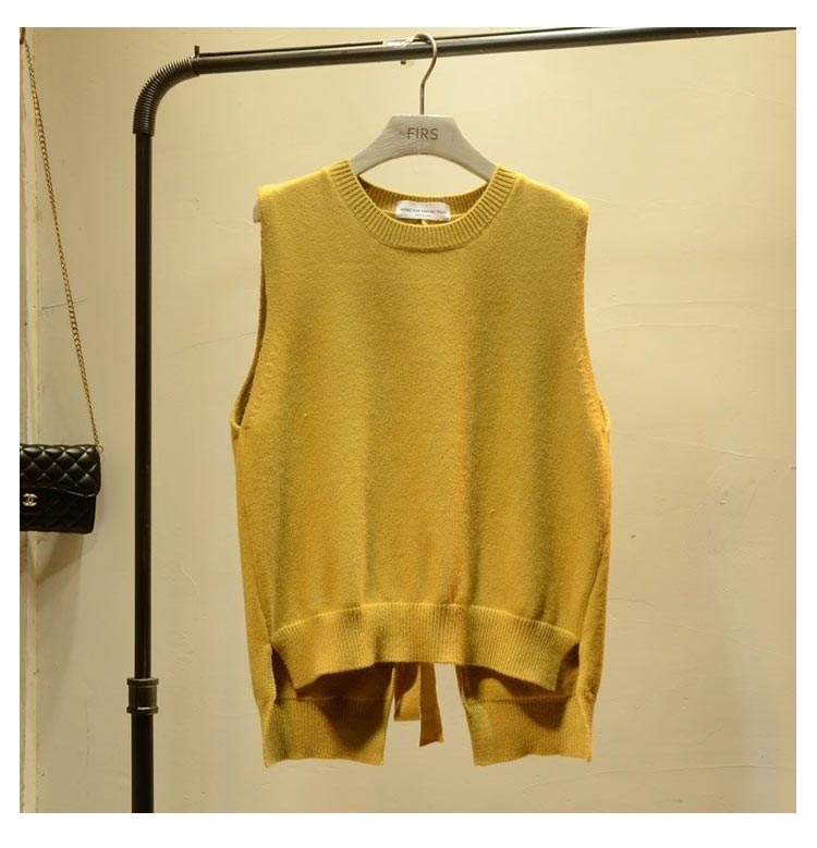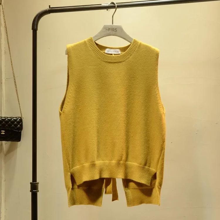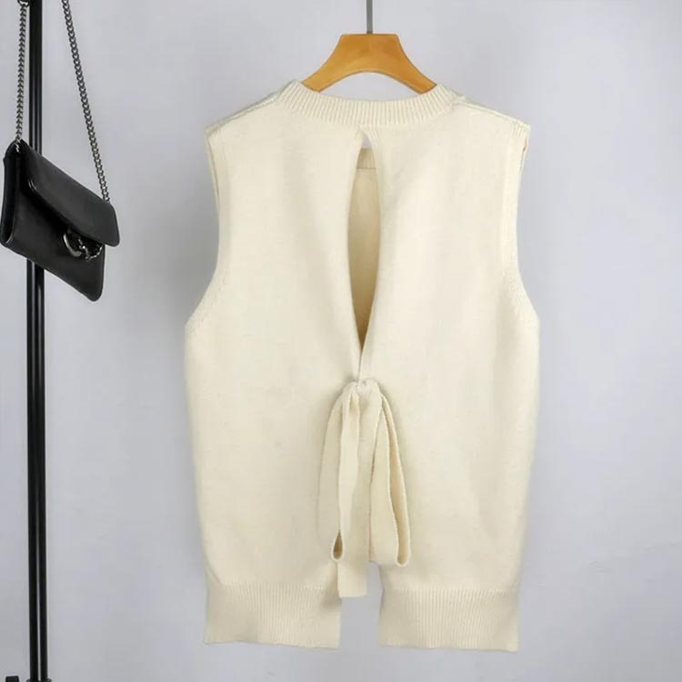 ニット ベスト レディース ニットベスト レイヤード 重ね着 ニット トップス ノースリーブ プルオーバー バックスリット リボン ニット セーター ラウンドネック 薄手 ショート丈 サイドスリット 前後差 シンプル 可愛い カジュアル 大きいサイズ 春 夏 秋 冬 送料無料