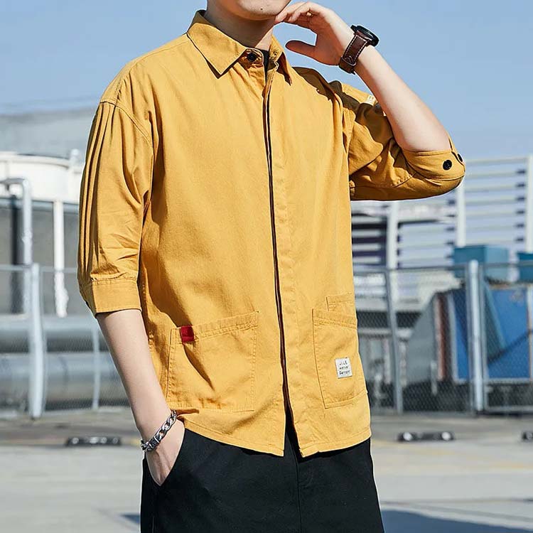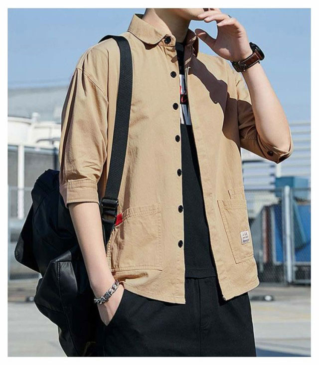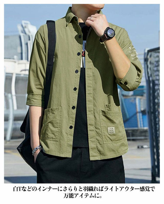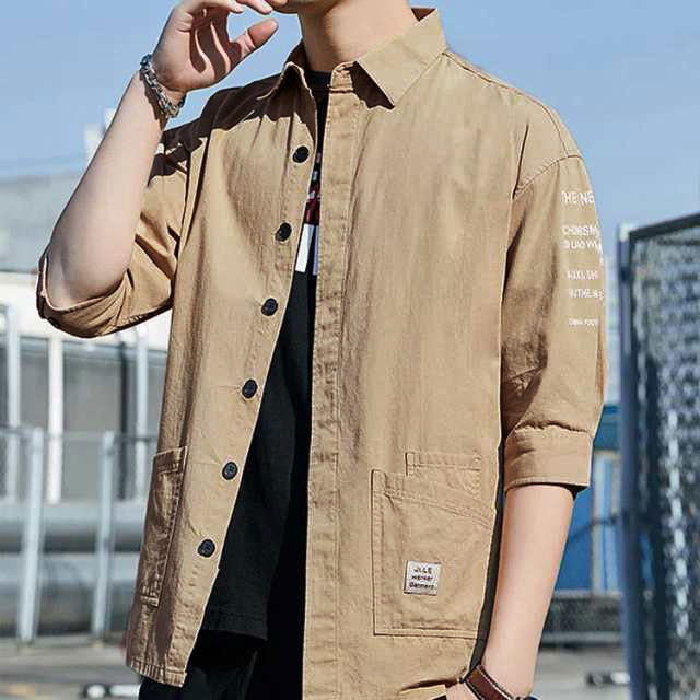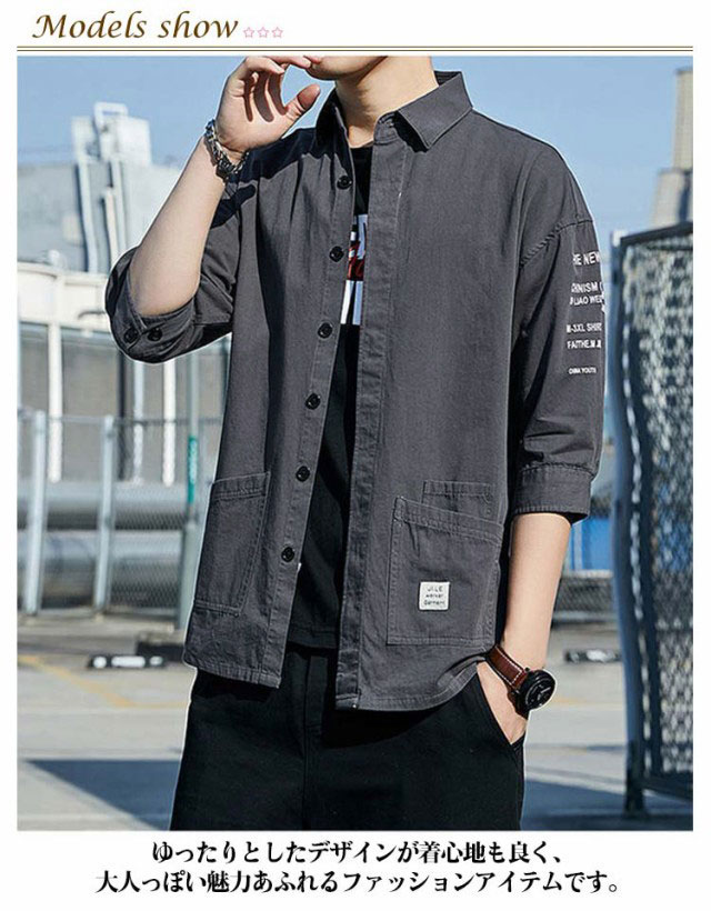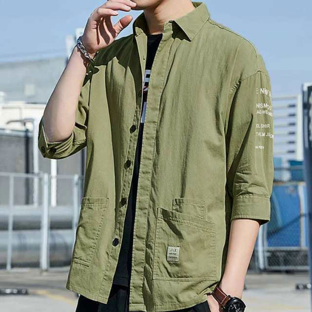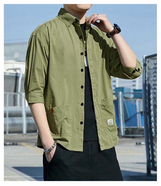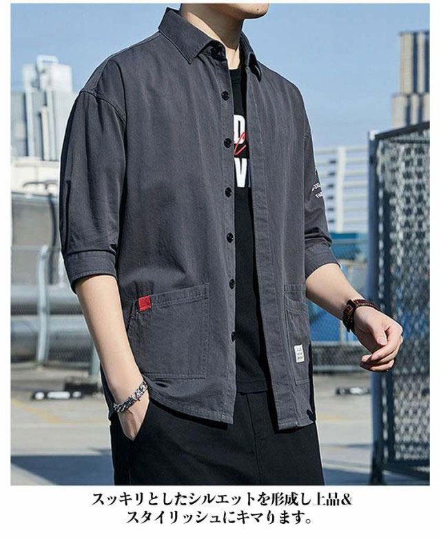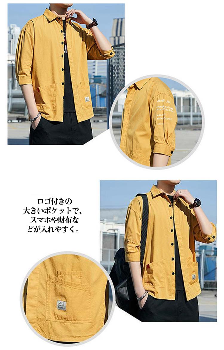 シャツ メンズ 七分袖 ワイシャツ 無地 カジュアル シンプル オシャレ 人気 メンズ カジュアルシャツ ゆったり 春夏秋服 大きいサイズ 送料無料