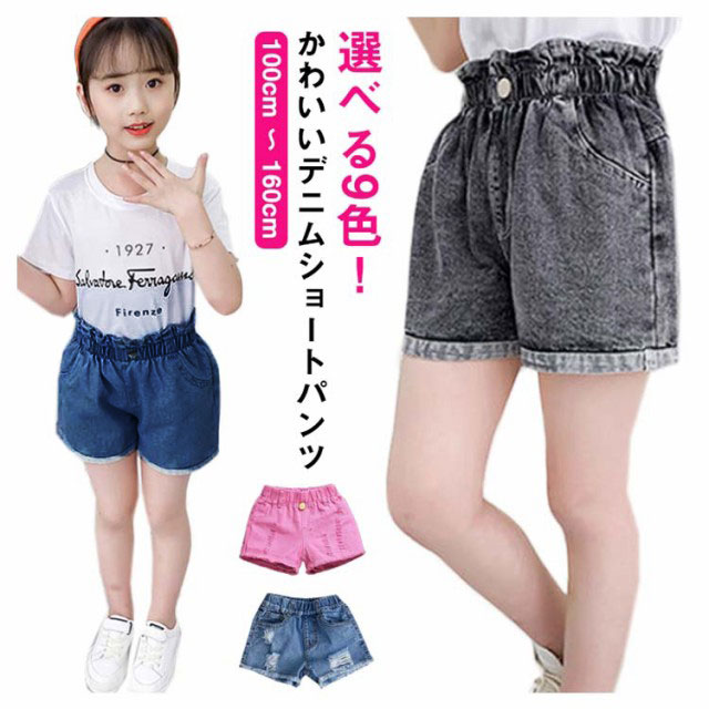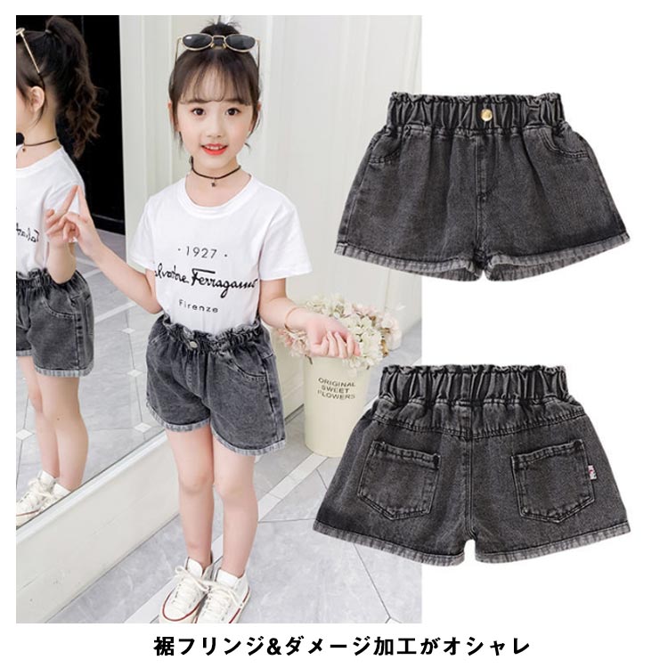 ショート デニム 半ズボン 韓国系子供服 ショートパンツ デニム キッズ 子供服 女の子 デニム キッズ ショートパンツ ウエストゴム ガールズ ジュニア 通学 ダメージ クラッシュ 半ズボン ジーンズ ボトムス 女の子 ガールズ 女児 半ズボン カジュアル 夏 送料無料