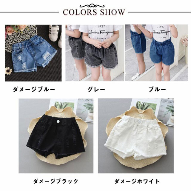 | 【選べる10色!】 【100cm ~ 160cm】 かわいいデニムショートパンツ 裾フリンジ&ダメージ加工がオシャレ ウエストがゴムなので楽ちんです。 カラー、サイズ展開豊富なので毎日違うコーデを楽しめます。 | |