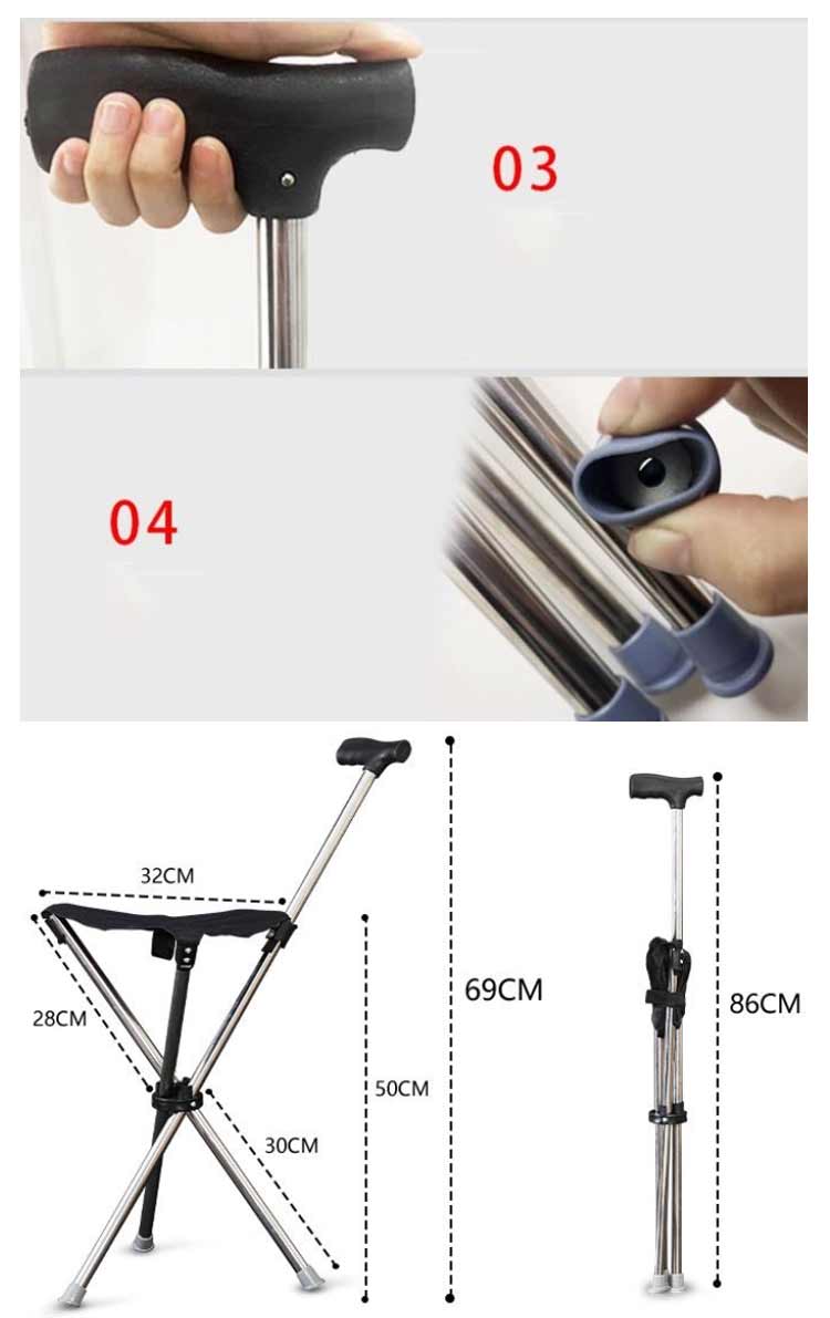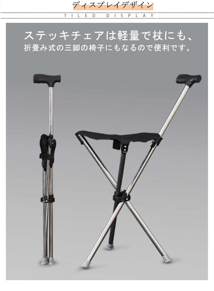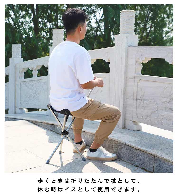 ステッキチェア 軽量 折りたたみ イス 杖 三脚 ステッキ チェアー 椅子 イス 3本脚 休憩 女性 介護 座れる杖 座れるステッキ 歩行補助杖 軽量 コンパクト 杖 椅子 腰痛 旅行 アウトドア 釣り ゴルフ 運動会
