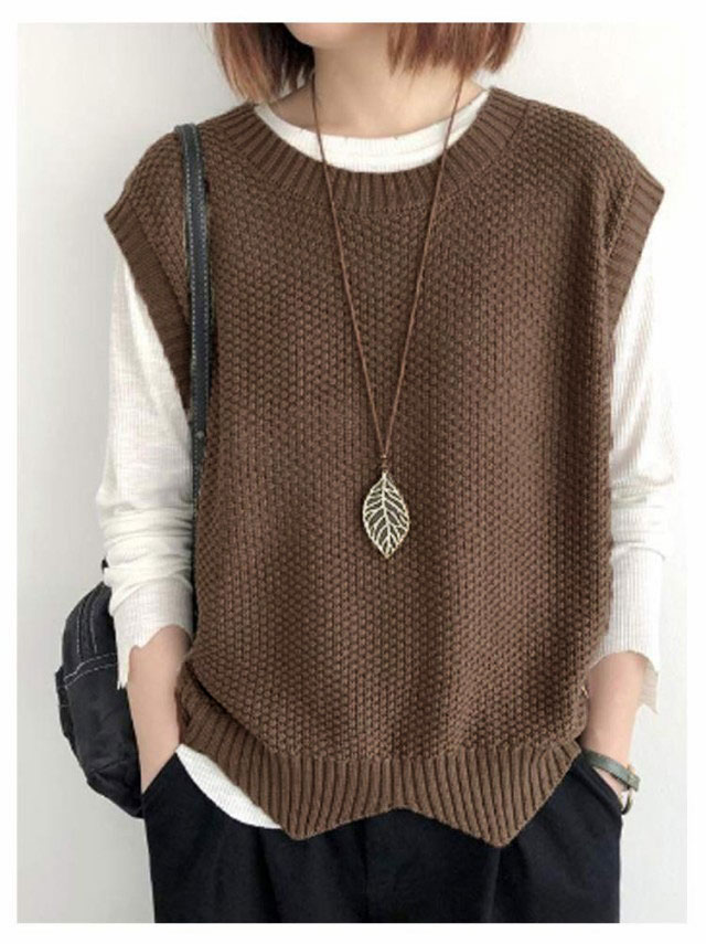 ニット ベスト レディース 春夏 ニットベスト ニットジレ サマー ベスト Vネック ギザギザの裾 チョッキ プルオーバー おしゃれ 重ね着 レイヤード ノースリーブ クルーベスト セーター ゆったり 冷房対策 無地 シンプル