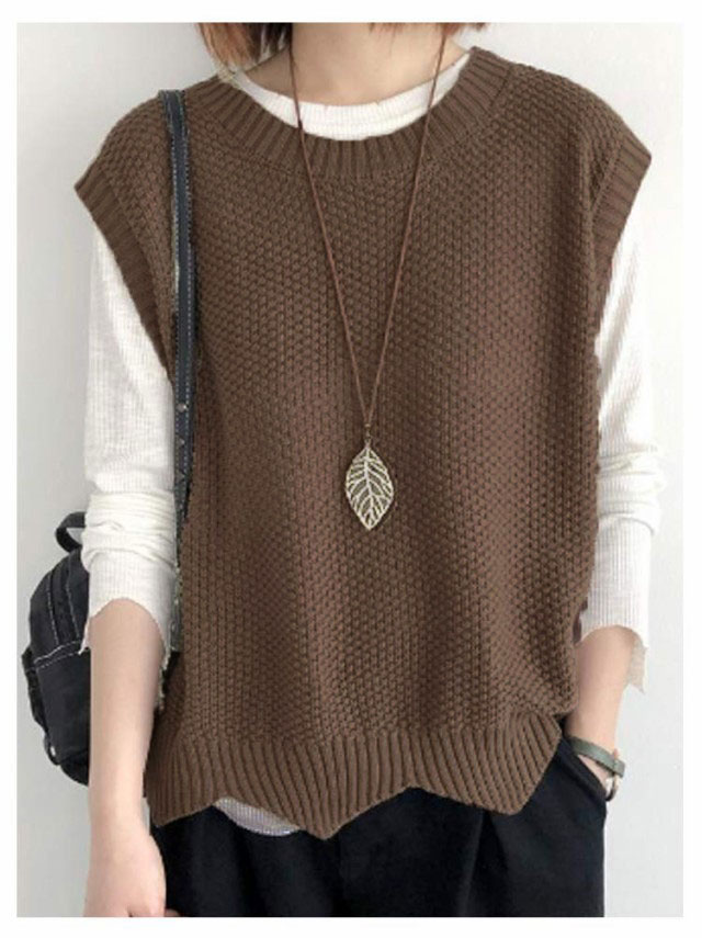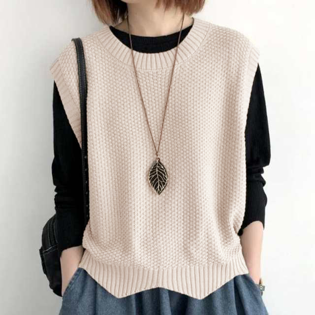 重ね着のベスト風も通して涼しいニットです。ゆったりとしたサイド感はレイヤードファッションに最適!しっかり編み目を詰めたミドルゲージのケーブル編みが、立体感と豊かな表情を生み出します。シャツやカットソーの上に着て簡単にコーデ完成のノースリニット。独特なギザギザの裾デザインは、伝統的な服のデザインを一新して、ユニークなラインを作り出し、全体の服に動きと楽しさを加えます。雰囲気の違う8色も用意され、お好みやコーデ次第で選べます。ロングシーズン使える、レディースニットベス。