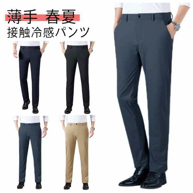 ビジネス スリム 接触冷感 スラックス ビジネス ストレッチ 洗える メンズ ストレッチパンツ 長ズボン ロングパンツ 夏用 チノパン 夏用 大きいサイズ ウォッシャブル スリム 美脚 ビジネス カジュアル おしゃれ 薄手 春夏 秋