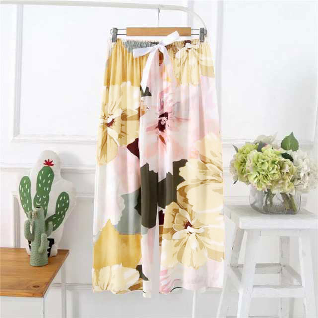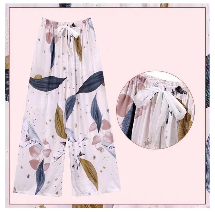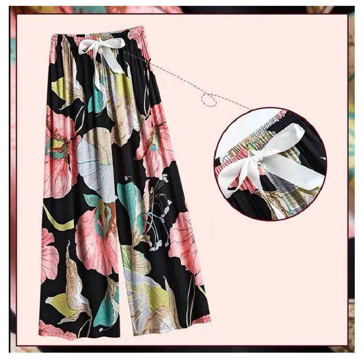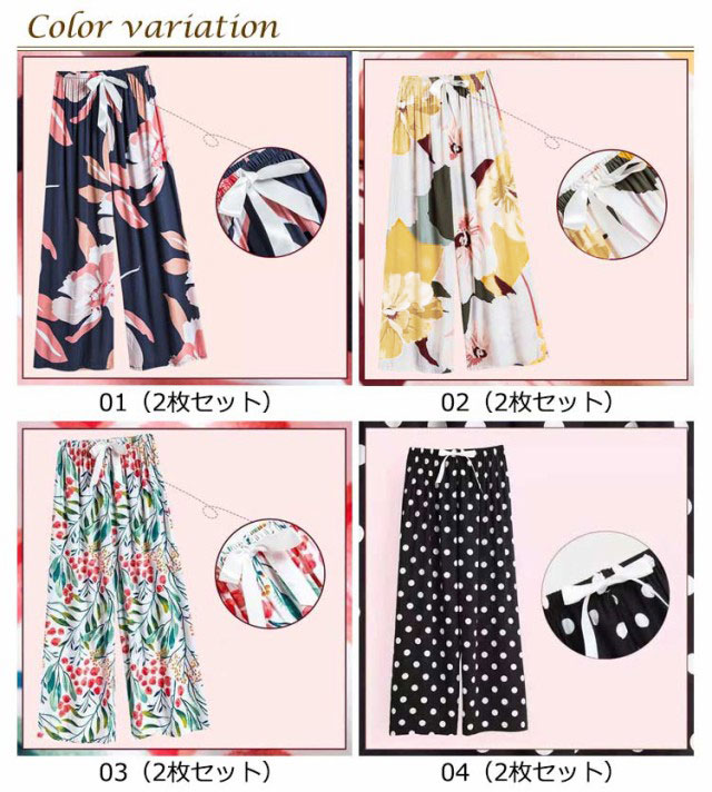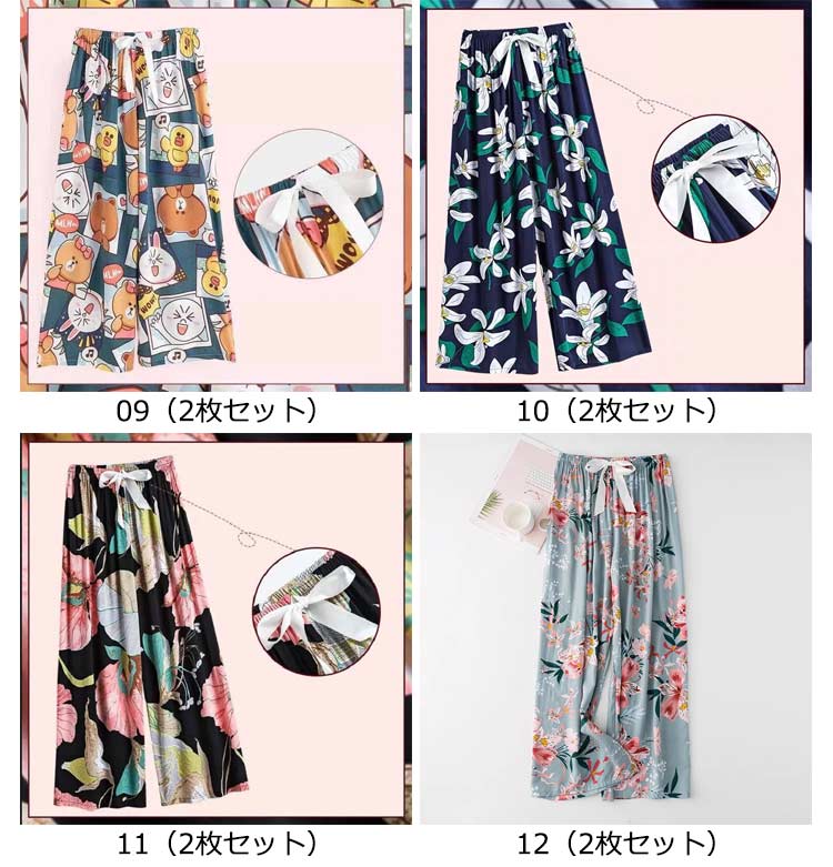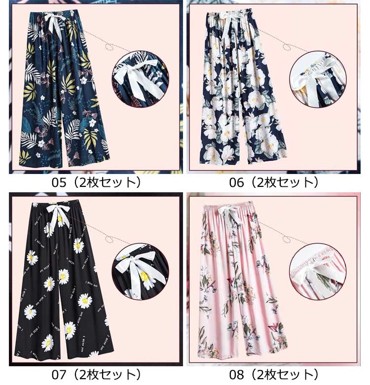 2枚セット!リラックスパンツ ルームパンツ レディース ワイドパンツ 9分丈 九分丈 ルームウェア ステテコ とろみ リラックス 花柄 総柄 ゆったり 薄手 涼しい 夏パンツ 部屋着 おしゃれ かわいい 婦人 パジャマ ロングパンツ サラテロパンツ 春 夏 秋 送料無料