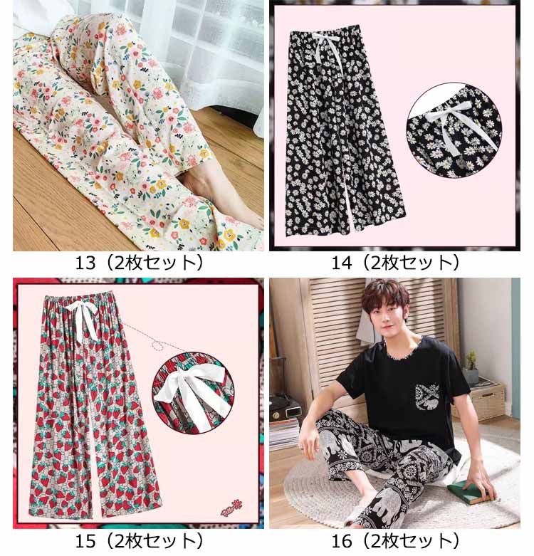 | 2枚セット!全20種類!ゆったりシルエットで、ひざが隠れる丈感のルームパンツです。 春秋はもちろん、夏用のパジャマとしても活躍してくれます。 リラックスタイムにぴったり? 通気性がよく涼しい。女性らしいカラフルなカラーと柄がオシャレ。 | |