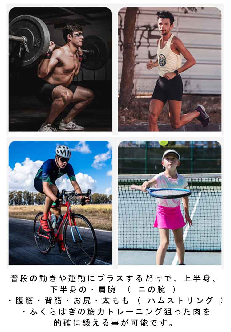| 日常生活が筋トレになる、ウエイトバンド2個セット! 手首足首の筋力UPに!首や足首に巻き付けるだけ! 普段の運動やトレーニング時に手首や足首につけるだけで、 負荷がかかって効率的に筋力アップを目指せます。 普段の動きや運動にプラスするだけで、上半身、下半身の?肩腕 ( ニの腕 )?腹筋?背筋?お尻?太もも ( ハムストリング )?ふくらはぎの筋力トレーニング狙った肉を的確に鍛える事が可能です。 | |