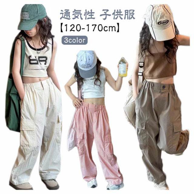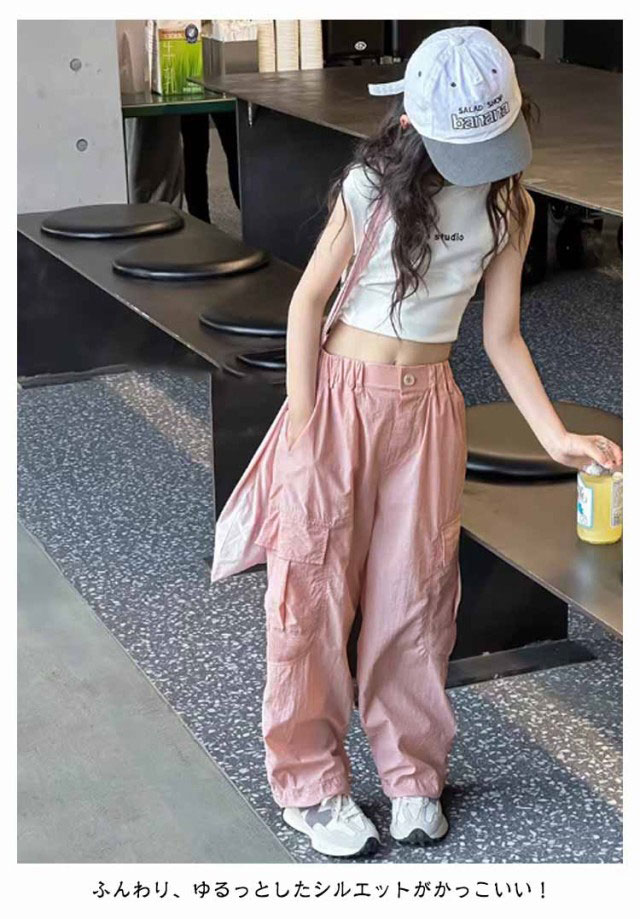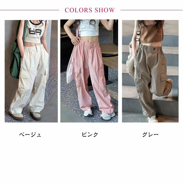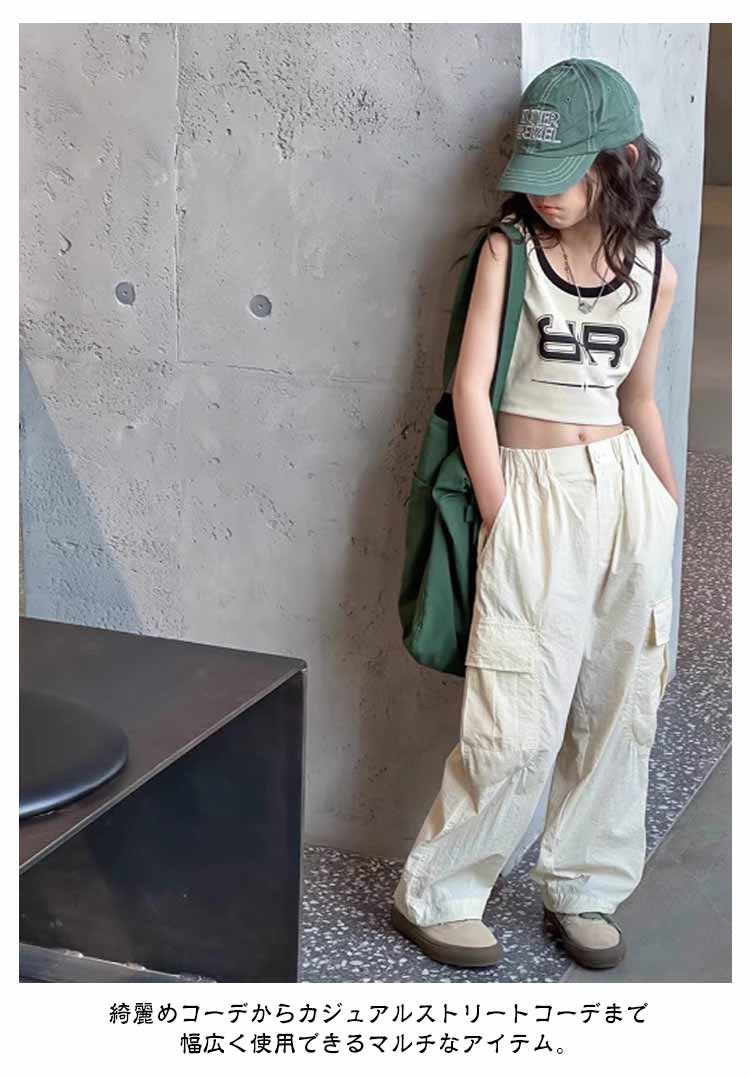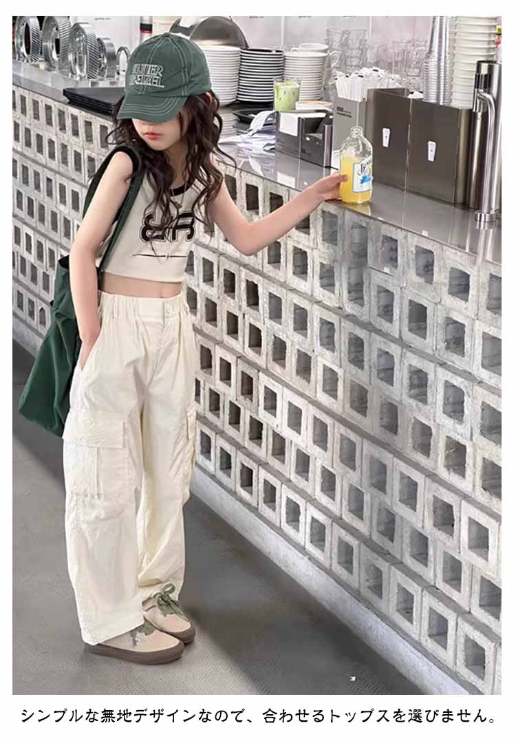 パンツ キッズ カーゴパンツ 女の子 子供服 ウエストゴム ガールズ 120 130 140 150 160 170cm 通園 通学 ダンス 衣装 カジュアル ボトムス ベージュ 子ども ストリート ヒップホップ k-pop グレー ピンク ロングパンツ 長ズボン ワイドパンツ 通気性
