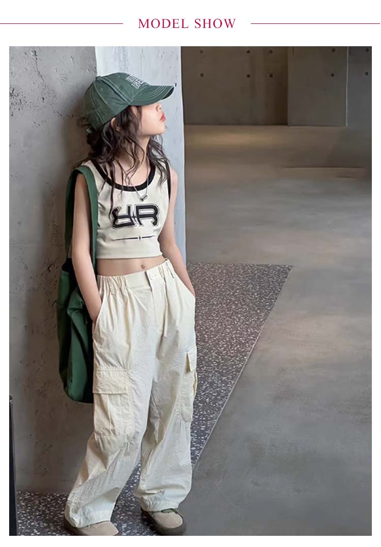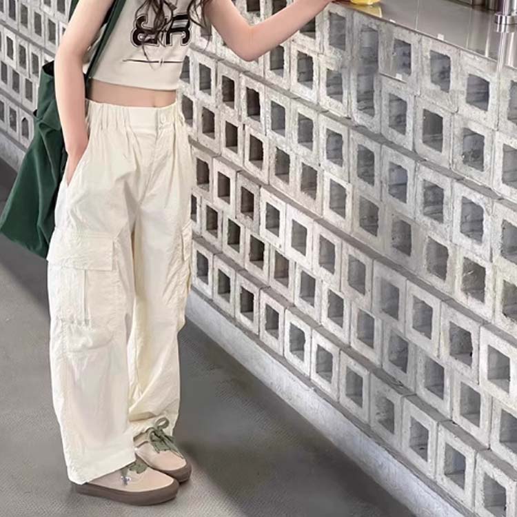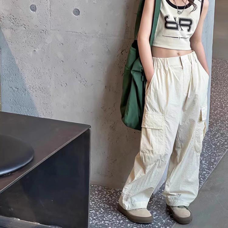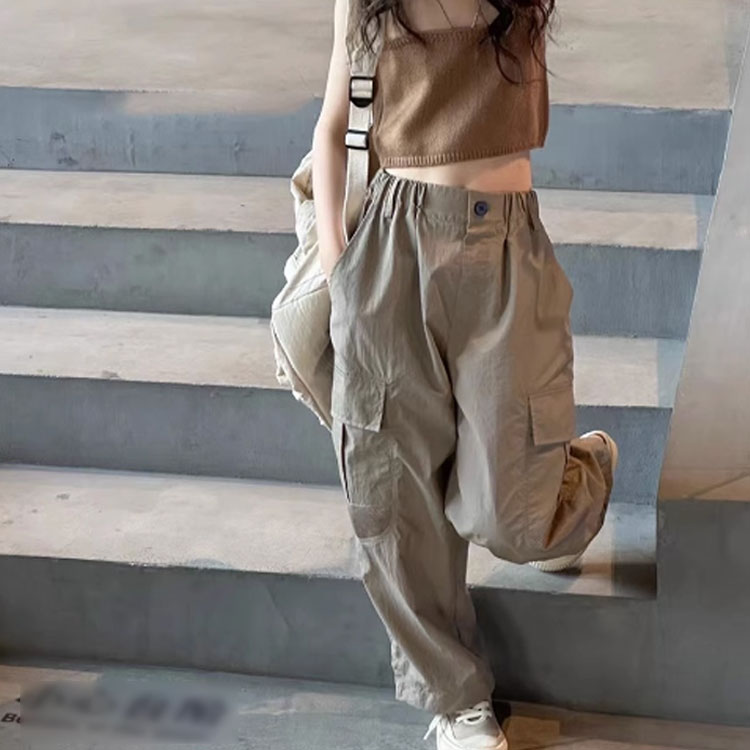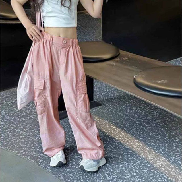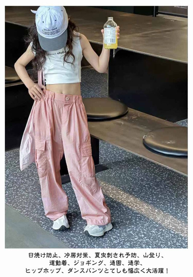 パンツ キッズ カーゴパンツ 女の子 子供服 ウエストゴム ガールズ 120 130 140 150 160 170cm 通園 通学 ダンス 衣装 カジュアル ボトムス ベージュ 子ども ストリート ヒップホップ k-pop グレー ピンク ロングパンツ 長ズボン ワイドパンツ 通気性