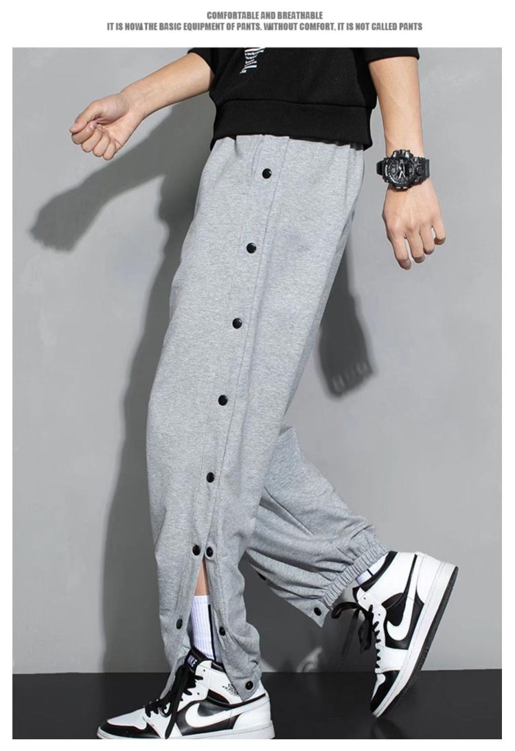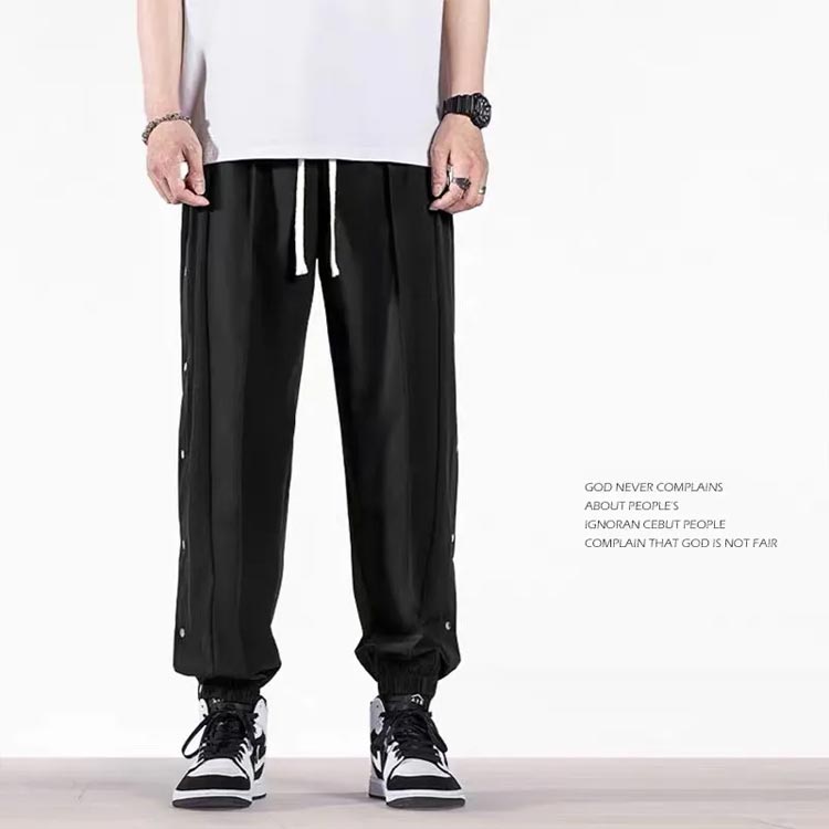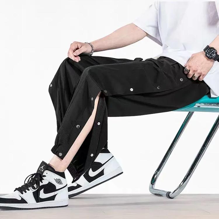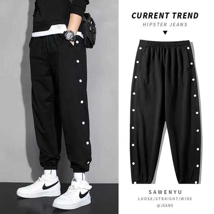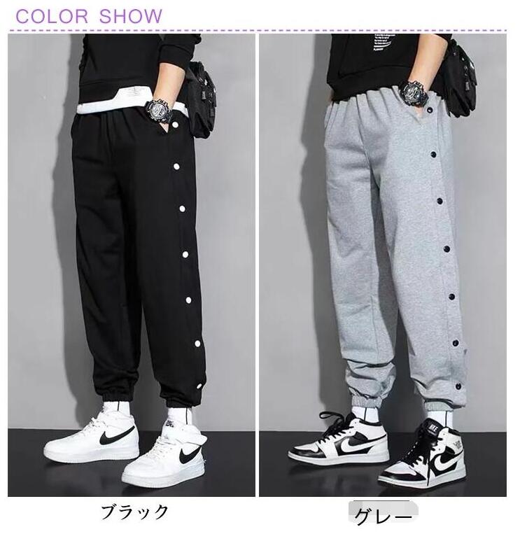 ラインジャージパンツ スウェットパンツ メンズ ジョガーパンツ サイドスリット サイドボタン サイド開き スポーツパンツ バスケットボールパンツ ロングパンツ サルエル ゆったり B系 ストリート系 かっこいい 黒 白 ブラック ホワイト