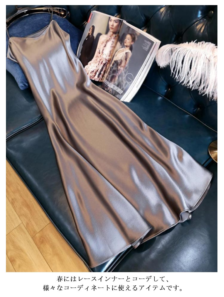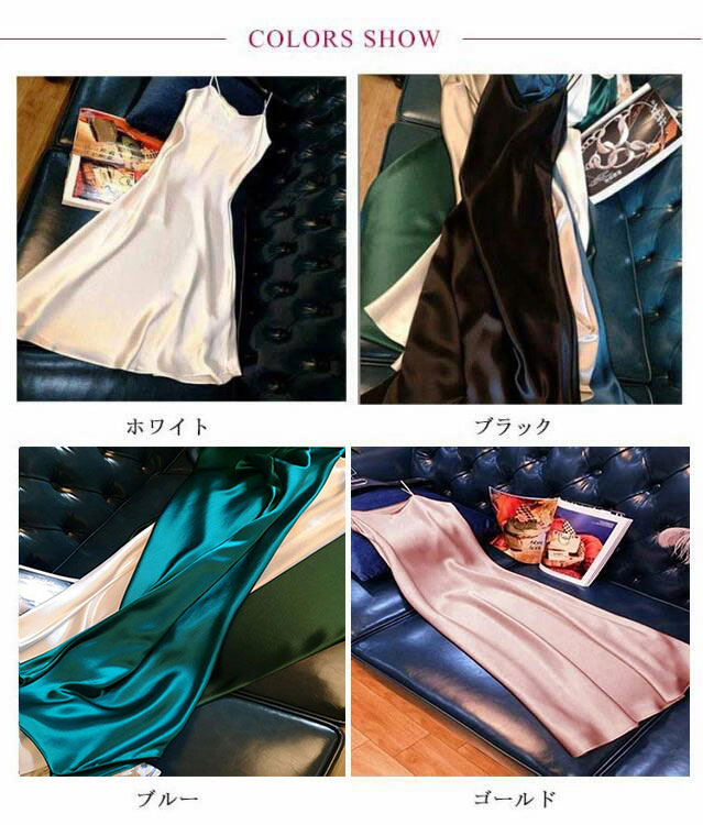 全7色×4サイズ サテンキャミソールワンピー キャミソールワンピース ロング丈 サテンワンピース キャミワンピ ロングワンピース Aラインワンピース キャミワンピース マキシワンピース サテンキャミソール セクシー フォーマル