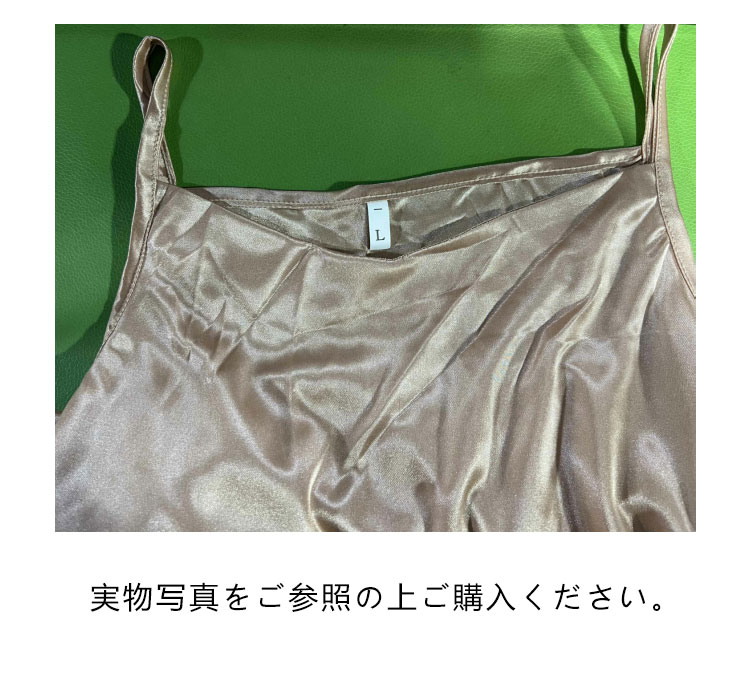 | サテンロング丈ワンピース。 Vネックに華奢な肩紐のキャミソールワンピース。 光沢感のある上品なサテン素材でひらひらとエレガント。 春にはレースインナーとコーデして、様々なコーディネートに使えるアイテムです。 | |