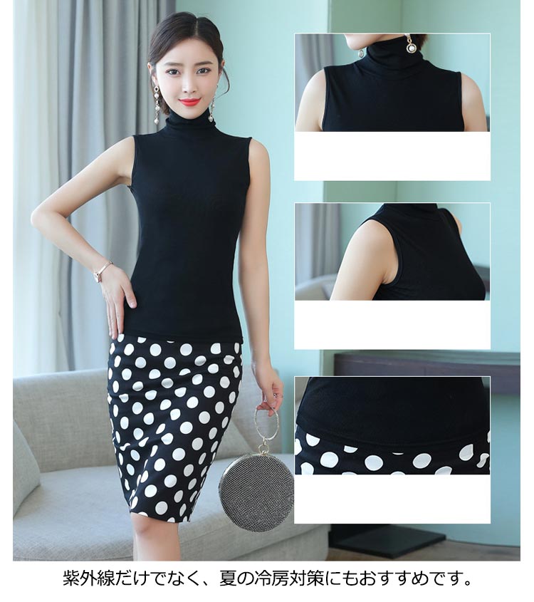 ノースリーブ ハイネック tシャツ レディース トップス タートルネック uvカット 紫外線対策 日焼け対策 薄手 首 インナー タンクトップ 無地 カットソー フィット 春 夏 サマー 白 黒 レイヤード 重ね着 ストレッチ ボトルネック シンプル ネックガード