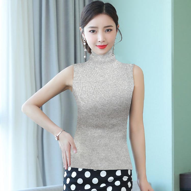 首元まで日焼け防止ができるノースリーブのハイネック カットソー。ハイネックtシャツは夏紫外線対策に大活躍。冬は首の保湿にもおすすめです。紫外線だけでなく、夏の冷房対策にもおすすめです。肌触りの良い、薄手のサラっとした綿(コットン)混合素材です。伸縮性があり、ストレスなくボディーに優しくフィット◎
