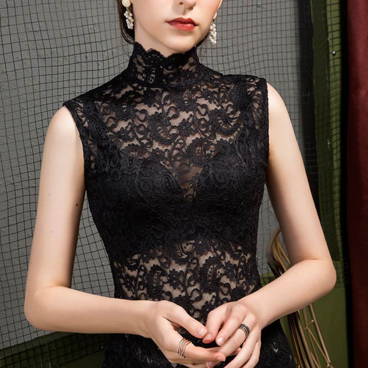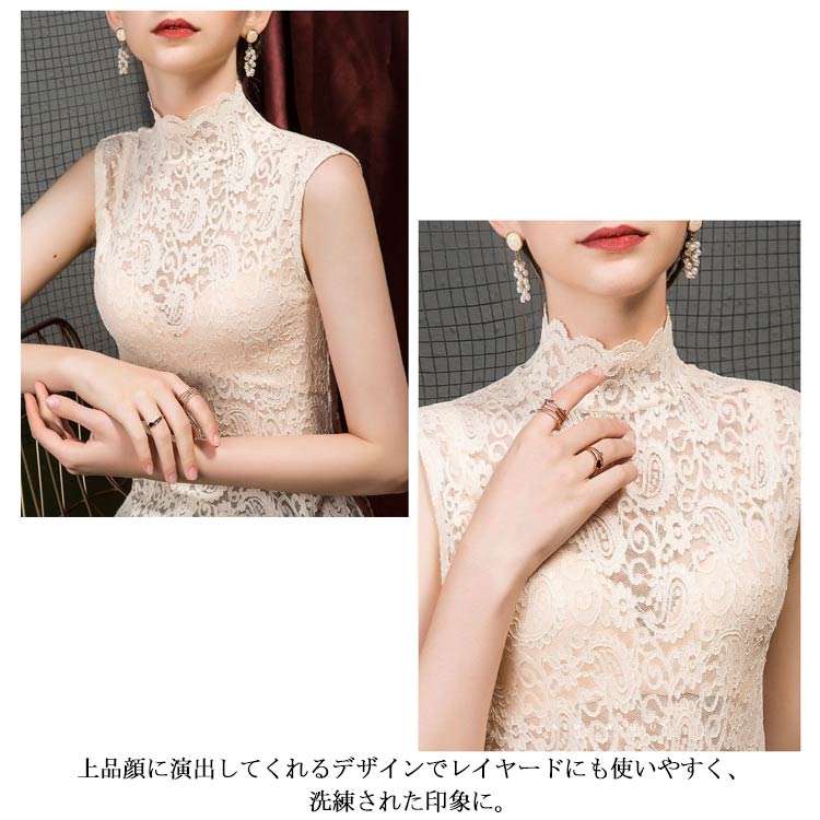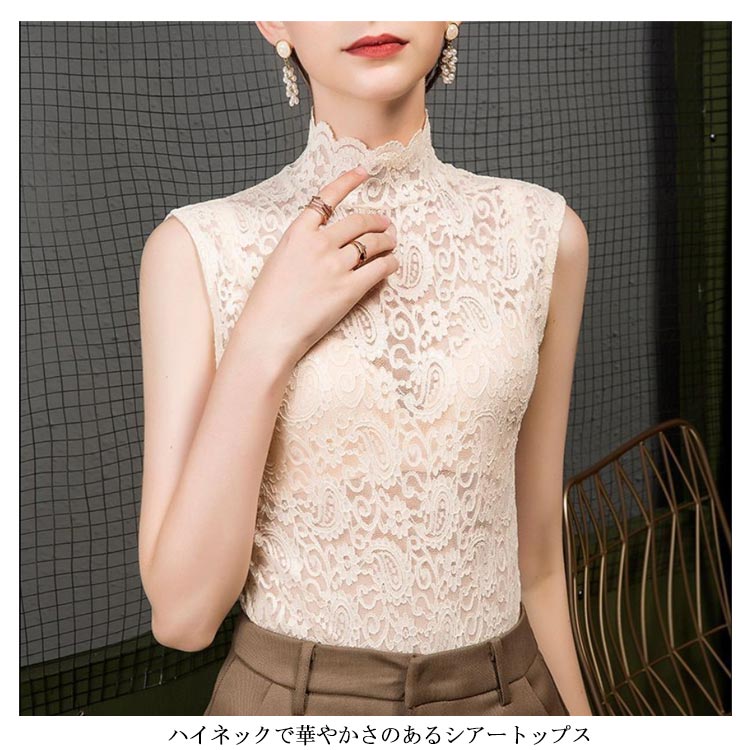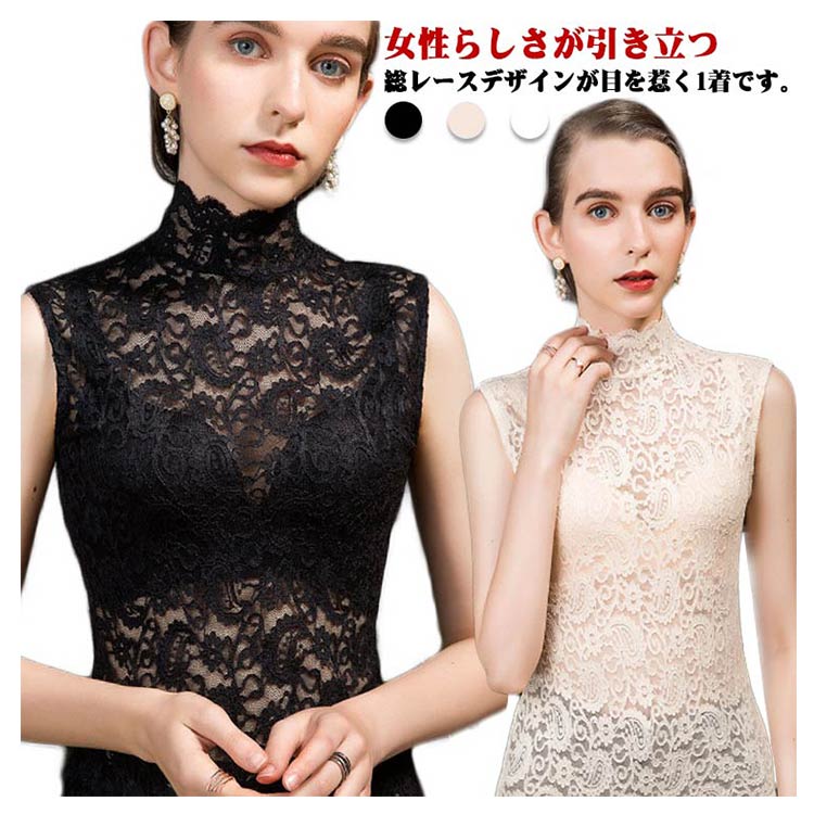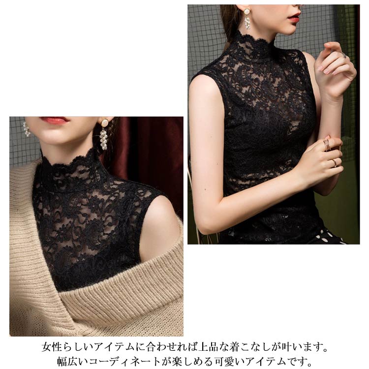 ノースリーブ レーストップス タンクトップ レディース 大きいサイズ シアートップス トップス インナー レイヤード ハイネック シースルー 重ね着 20代 30代 40代 春夏 フェミニン S M L XL 2XL 3XL