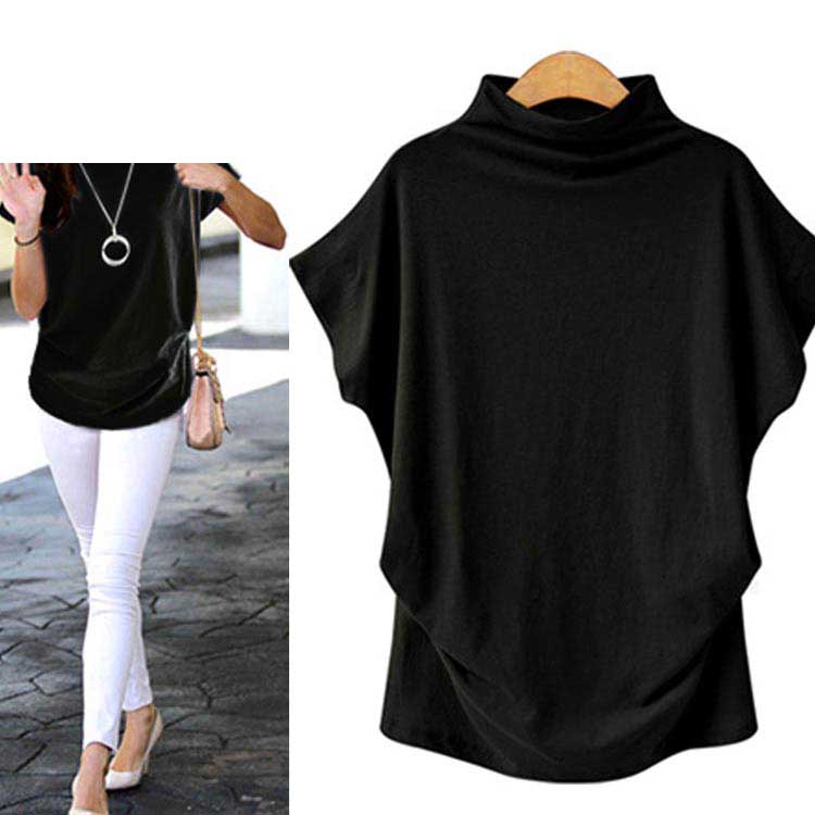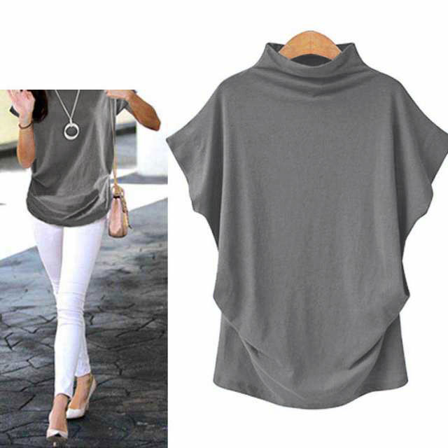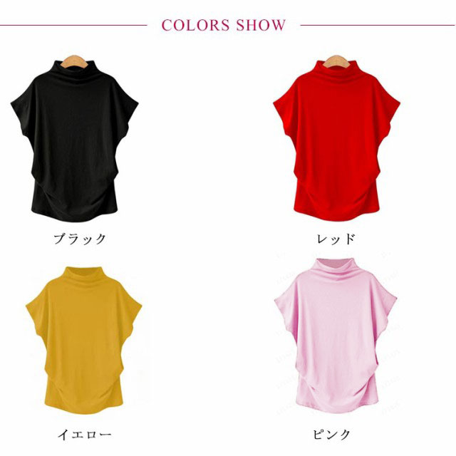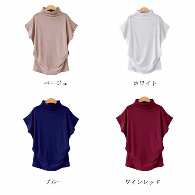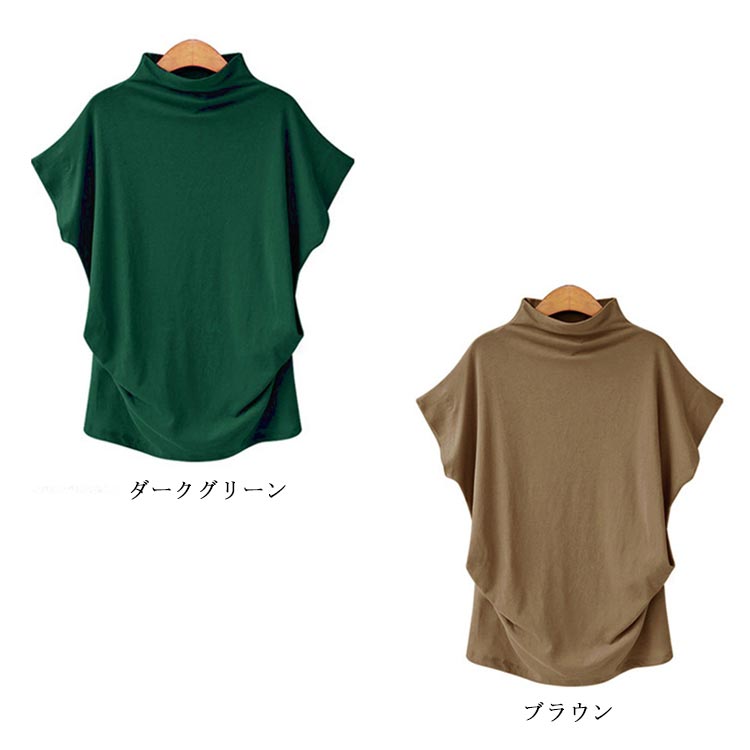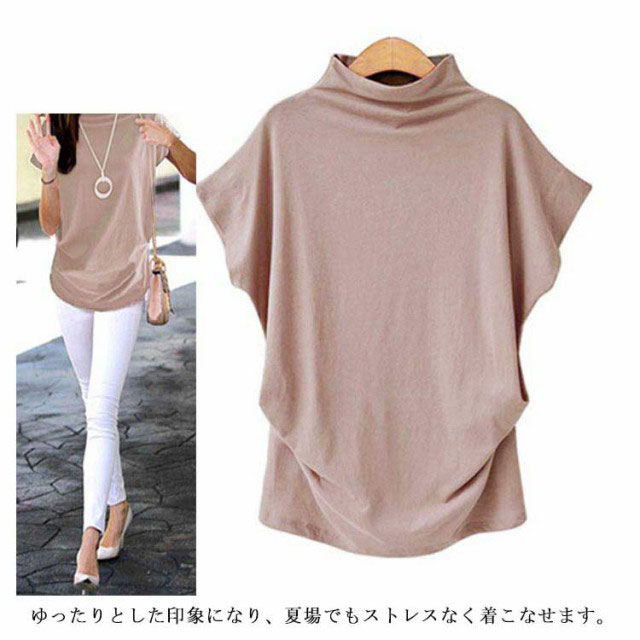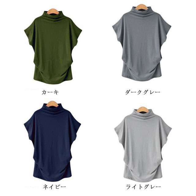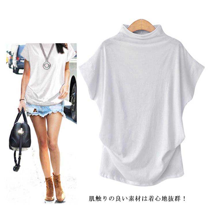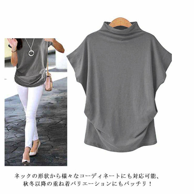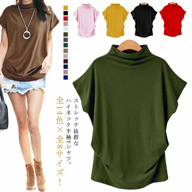 Tシャツ レディース プルオーバー カットソー 半袖 ハイネック タートルネック トップス tシャツ 薄手 伸縮性 ストレッチ ドルマンスリーブ ゆるT 体型カバー 春 夏 秋 カジュアル 大きいサイズ ゆったり 着痩せ 可愛い 柔らかめ シンプル おしゃれ 無地 通勤 OL 送料無料