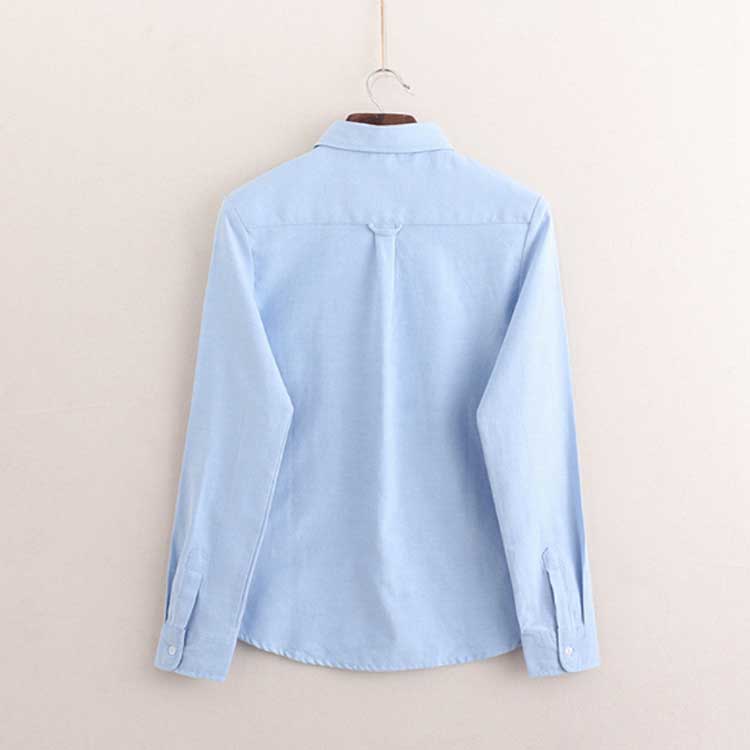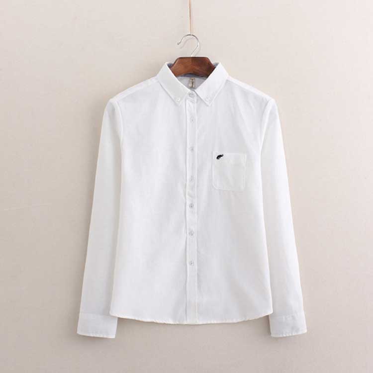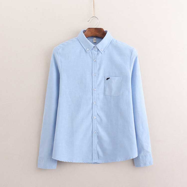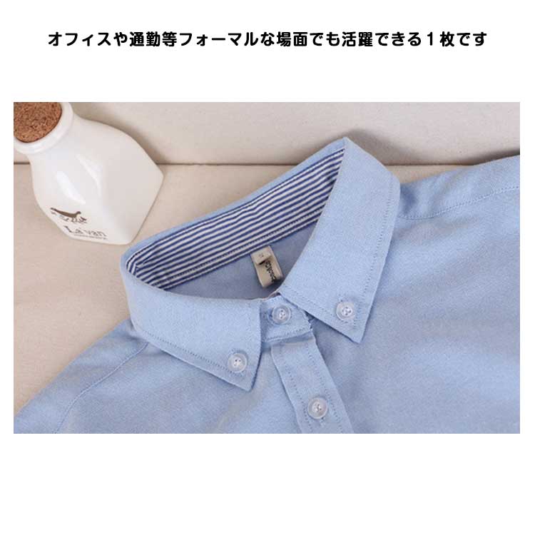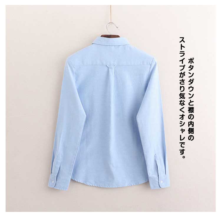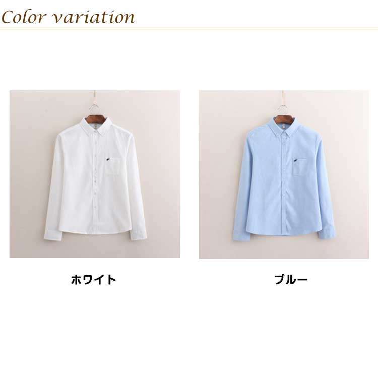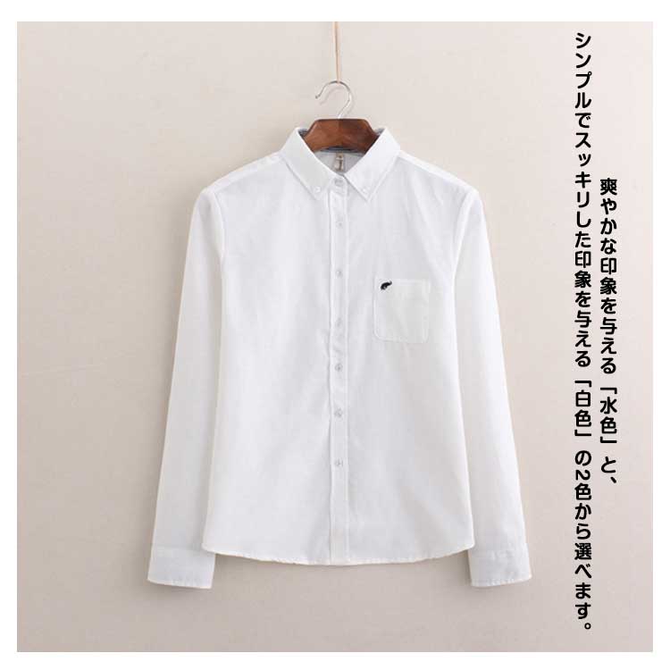 白シャツ 象 刺繍 シャツ オックスフォードシャツ ブラウス 送料無料 長袖 オックスフォード ホワイト 白 ブルー 水色 レディース トップス 白ブラウス 襟付き 通学 きれいめ カジュアル オフィス フォーマル 制服 事務服 秋 冬 春